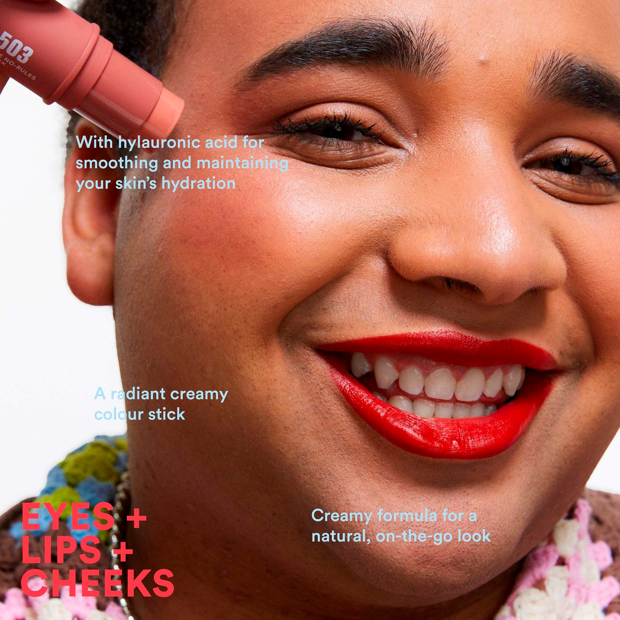 Kremowy, wielozadaniowy, kolorowy sztyft do oczu, ust i policzków. Naturalny kolor po jednym pociągnięciu na makijaż lub czystą skórę dla efektu no-makeup. Idealny produkt do poprawek makijażu poza domem. Lekka kremowa formuła z wygładzającym i utrzymującym nawilżenie kwasem hialuronowym.Sposób użycia:Wykręć sztyft i przeciągnij nim po powiekach, ustach i policzkach. Wklep produkt palcami, by go wygładzić i rozetrzeć. Możesz nałożyć sztyft na palce i wklepać w skórę tam, gdzie chcesz zbudować dodatkowe krycie.