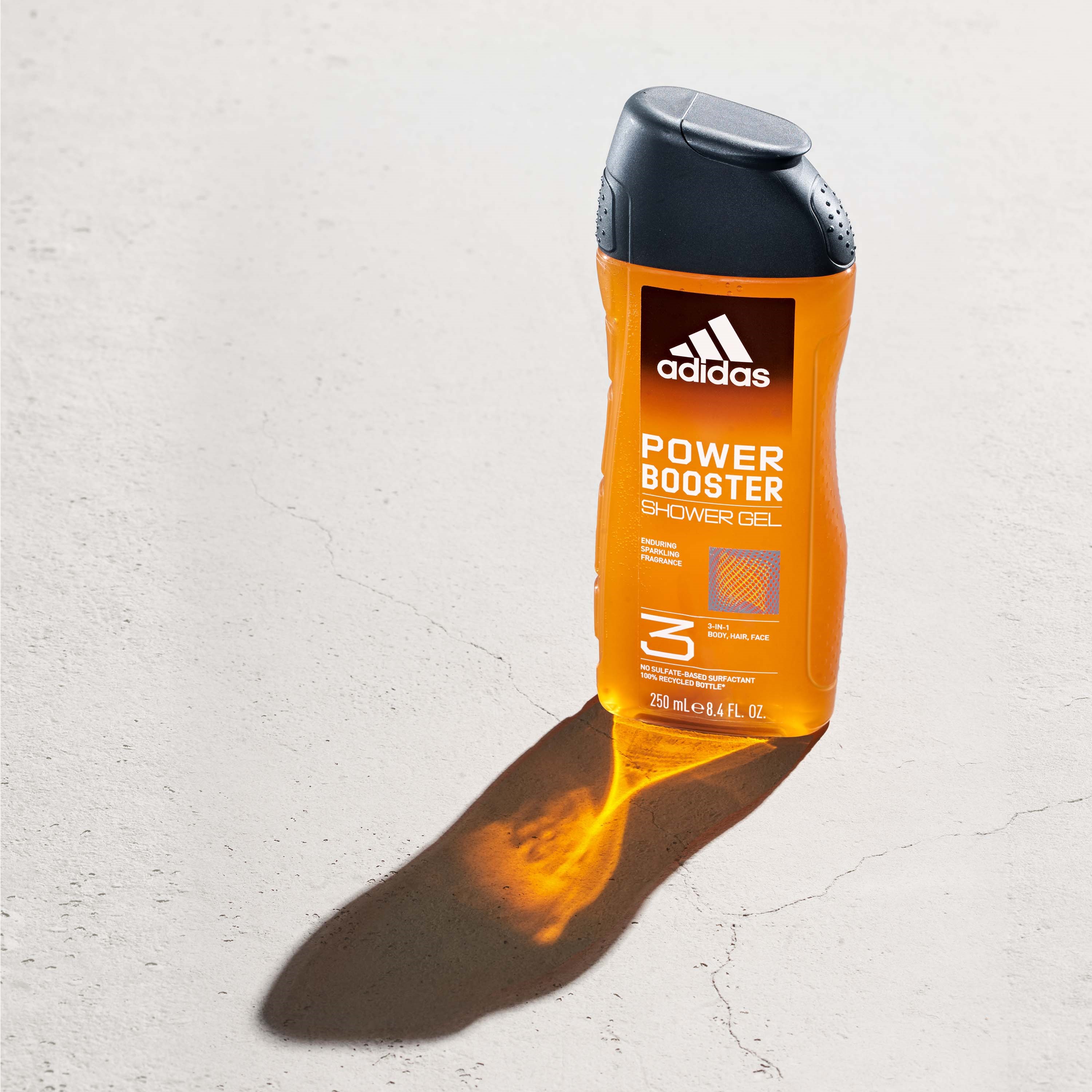 Żel pod prysznic Adidas Power Booster ma długotrwały, musujący zapach z nutami świeżych owoców, przypraw i mięty pieprzowej. Formuła żelu pod prysznic 3 w 1 jest testowana dermatologicznie i wegańska. Opakowanie wykonane jest z butelki pochodzącej w 100% z recyklingu*. *Nie uwzględnia dodatków, nakrętki i etykiety.