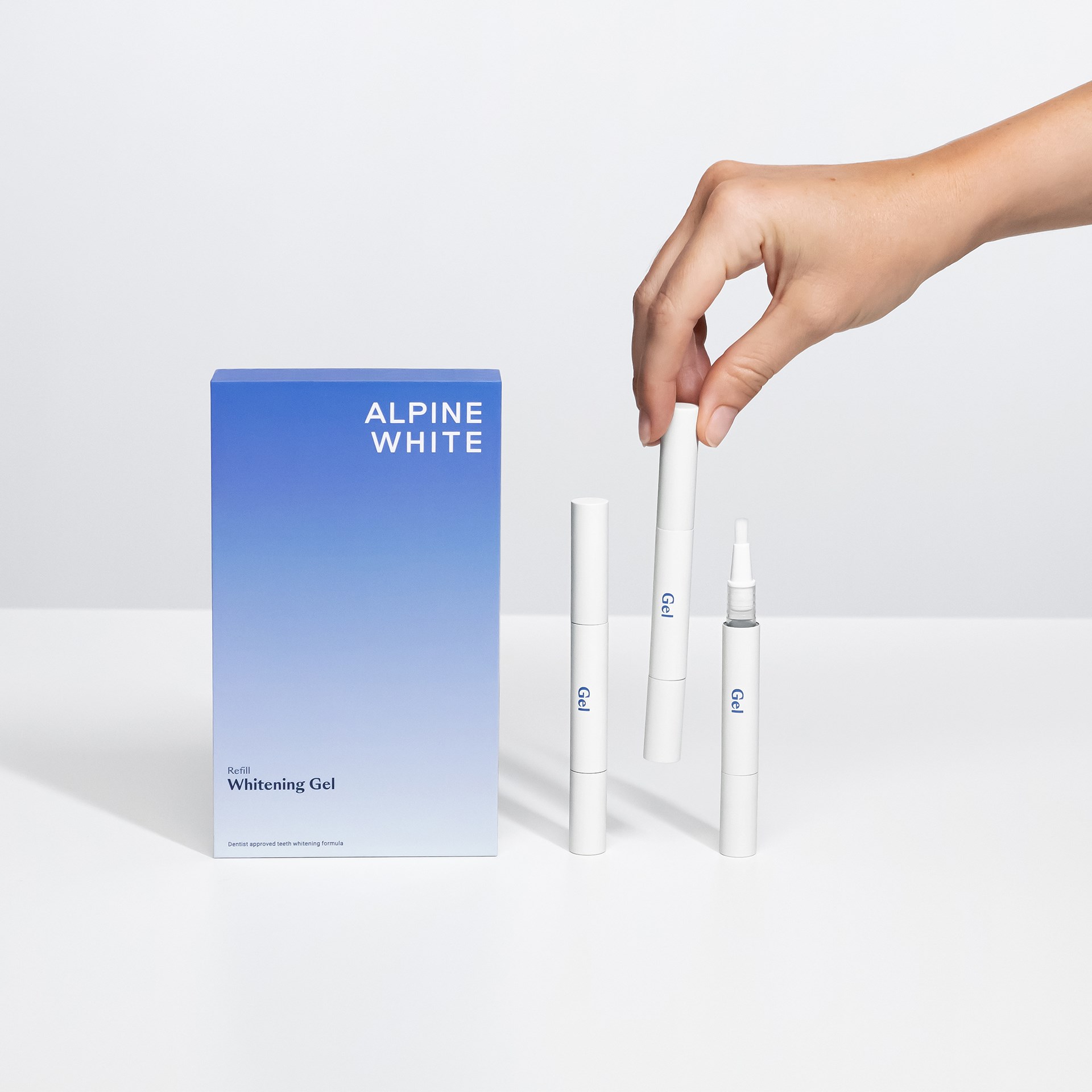 Żel wybielający ALPINE WHITE Whitening Gel dla widocznie bielszych zębów w zaledwie 3 dni – profesjonalne wybielanie zębów, opracowane i przetestowane przez dentystów i ekspertów stomatologicznych I Zastosowanie tylko 15 minut dziennie• NATURALNIE BIAŁE ZĘBY: Żel Whitening Gel został opracowany specjalnie do stosowania z wybielającym światłem LED (brak w komplecie). Żel umożliwia usunięcie nieestetycznych przebarwień i przywrócenie zębom świetlistej bieli.• BEZ KONIECZNOŚCI PODDAWANIA SIĘ DŁUGOTRWAŁYM ZABIEGOM: Żel, opracowany na podstawie wiedzy szwajcarskich dentystów i ekspertów stomatologicznych, zapewnia widocznie bielsze zęby już po 3 dniach.• WYBIELENIE ZĘBÓW W CIĄGU ZALEDWIE TYGODNIA: Aby uzyskać optymalne wybielenie, używaj żelu maksymalnie po 15 minut przez 7 kolejnych dni.• DELIKATNE WYBIELANIE ZĘBÓW BEZ NADTLENKU WODORU: Naturalne składniki wybielają zęby, chronią przed podrażnieniami i remineralizują szkliwo. Wybielacz do zębów jest przetestowany klinicznie pod kątem bezpieczeństwa. Odpowiedni do wszystkich zębów.• KONSEKWENTNY ZRÓWNOWAŻONY ROZWÓJ: Żel ALPINE WHITEning Gel posiada certyfikat PETA cruelty free (nietestowana na zwierzętach) i jest produktem wegańskim, jak również posiada certyfikat ClimatePartner potwierdzający neutralność klimatyczną. Kupując produkt, za każdym razem wspieramy projekt Wasser für Wasser.Sposób użycia:Zalecamy stosowanie zestawu Whitening Kit raz dziennie przez 15 minut, przez 7 dni. Umyj zęby na 30 minut przed użyciem.1. Wytrzyj powierzchnie zębów i nałóż na nie równomiernie żel Whitening Gel. Wystarczy jedna aplikacja obficie nasączonym pędzelkiem. 2. Włóż ustnik i zagryź go. Naciśnij przycisk włączania/wyłączania na 2 sekundy. Światło zasygnalizuje, że rozpoczyna się zabieg. 3. Po 15 minutach wybielające światło LED kończy aplikację sygnałem dźwiękowym i wyłącza się. 4. Dokładnie przepłucz ustnik wodą. Przepłucz usta i umyj zęby. 5. Nasza porada: zrób zdjęcia przed i po z wzornikiem koloru bieli zębów – to najlepszy sposób, aby zobaczyć różnicę!
