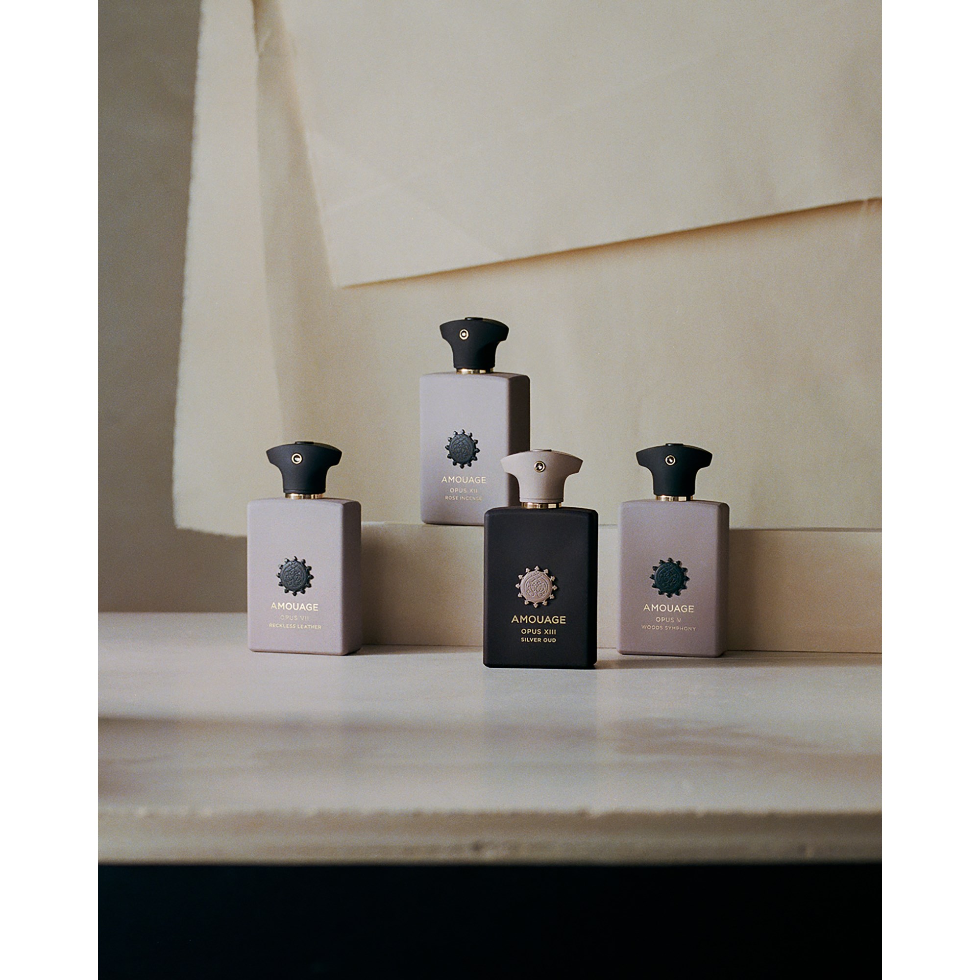 Poprzez dobrze wyważoną, "leśną symfonię", Opus V przywołuje, jak zwodnicza i transformująca może być wiedza. Kwiatowe i woskowe zapachy Orris Absolute oraz maślane i metaliczne nuty Orris Concrete napędzane suchym drewnem i mocnymi oparami Rhum malują binarny świat czarno-białych liczb, rozbitego szkła i danych szumiących za metalowymi stołami, podczas gdy surowa zwierzęcość Oud i Civet oraz delikatny zapach więdnącej róży i jaśminu przywołują zapach ludzi żyjących obok maszyn.