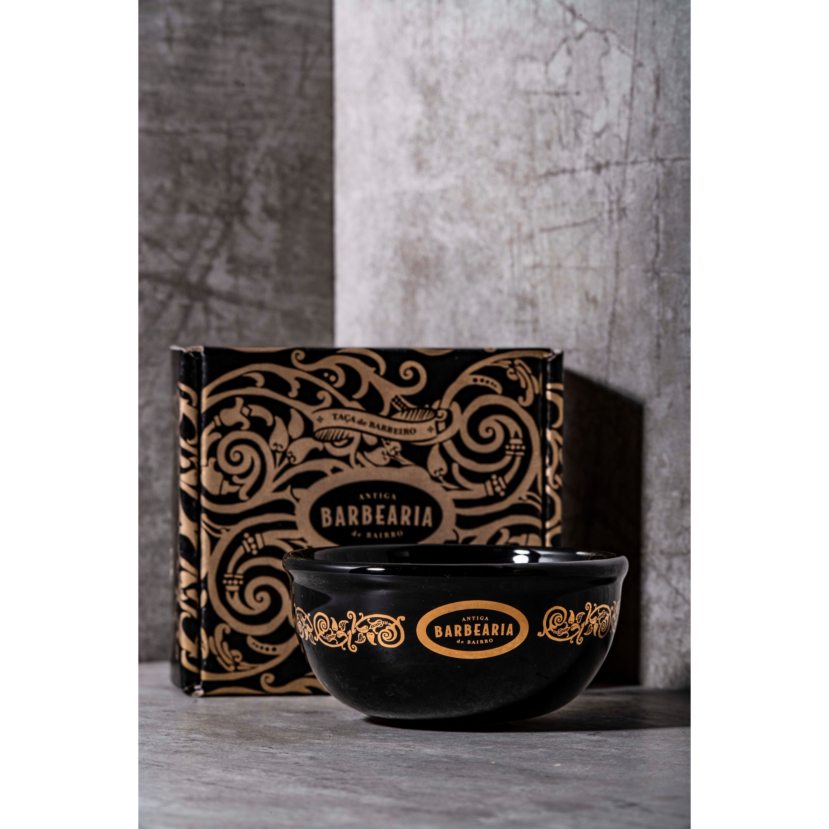 -20%Antiga Barbearia de Bairro Premium Porcelain Shaving Bowl to ekskluzywna miska do golenia z czarnej, szkliwionej porcelany, ozdobiona 10% złotym dekorem z prawdziwego złota. Wyprod……Więcej informacji