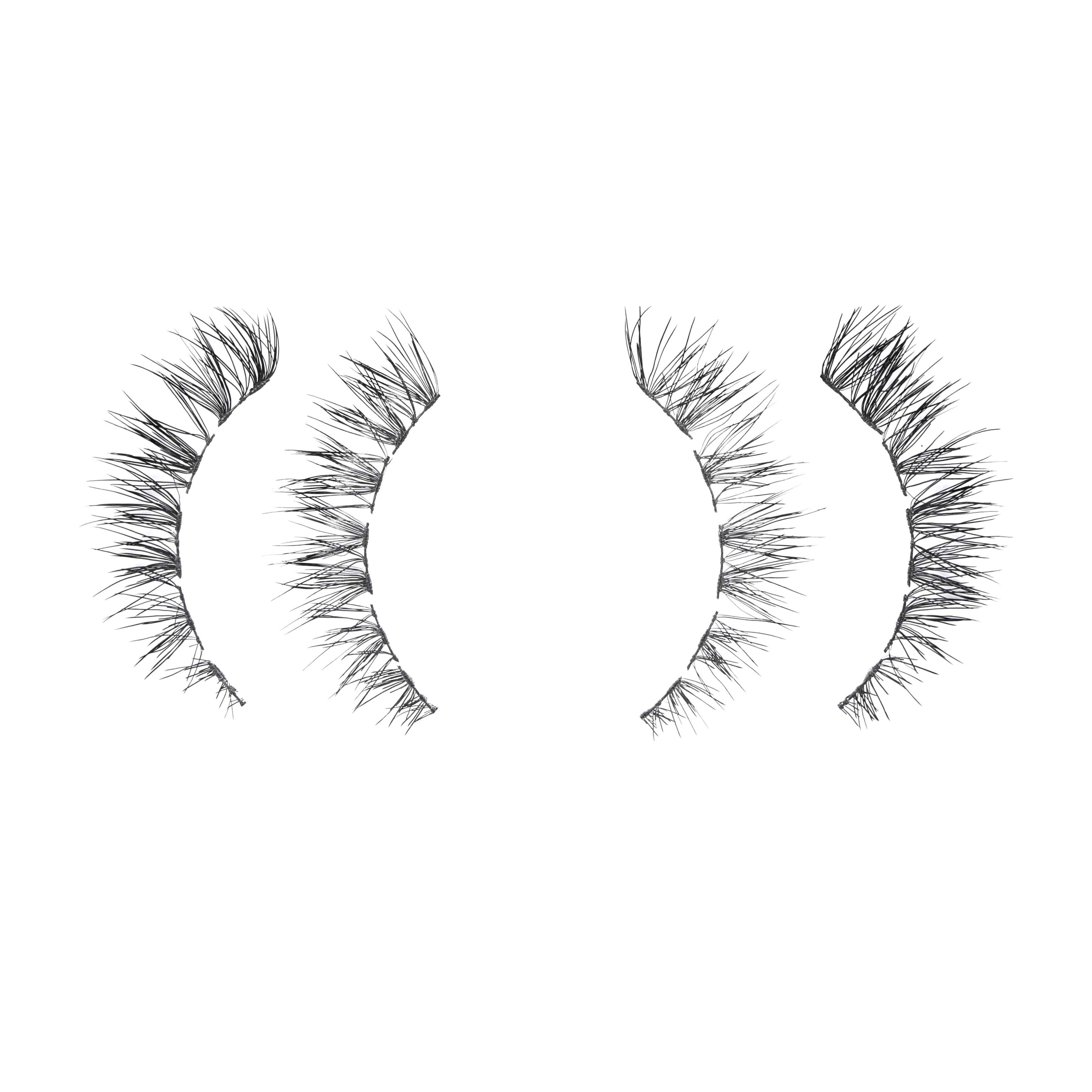 Rzęsy są podzielone na kłębki dla łatwego zastosowania pod własnymi rzęsami. Klej zapewnia utrzymanie rzęs w miejscu do 6 dni, ale zestaw zawiera również remover, jeśli rzęsy muszą być usunięte wcześniej.