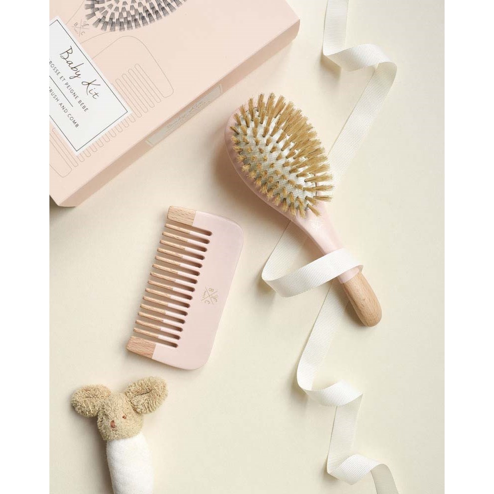 BACHCA Baby Kit Pink Brush 100% boar small size + wooden com – Różowy