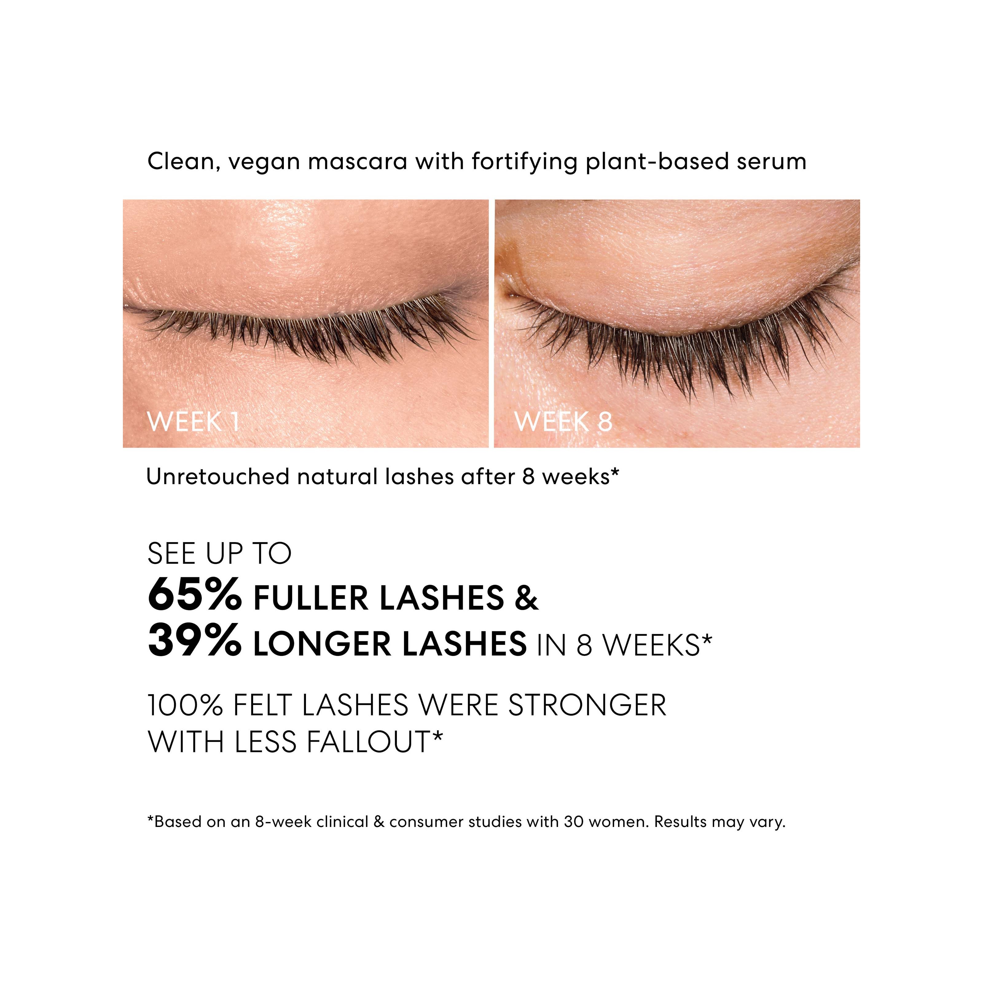 – Klinicznie wykazano, że w ciągu 8 tygodni rzęsy wyglądają do 65% pełniej i do 39% dłużej*.