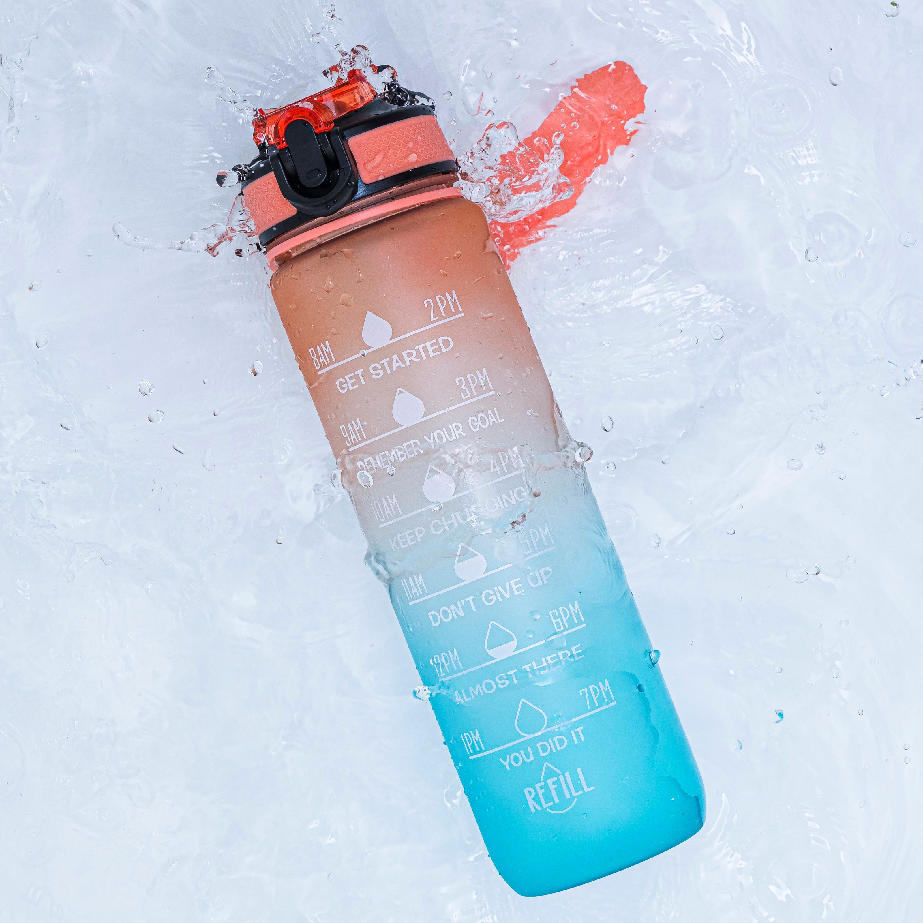 Butelka motywacyjna od Beauty Rebels sprawia, że picie wody przez cały dzień to czysta przyjemność. Pojemność butelki to 1 l, ma słomkę oraz wskaźnik, który pokazuje, ile wody już wypiłeś i ile jeszcze zostało, aby osiągnąć swój dzienny cel. Butelka jest szczelna i wykonana z Tritanu, który jest wolny od BPA, BPS (bisfenol S) oraz innych bisfenoli. Plastik Tritan jest znany jako najbezpieczniejszy materiał do używania jako butelka do picia. Butelka wytrzymuje temperatury do 100 stopni i można ją myć w zmywarce, ale aby jak najdłużej zachować jej kolor, zalecamy mycie ręczne.Pij wodę!