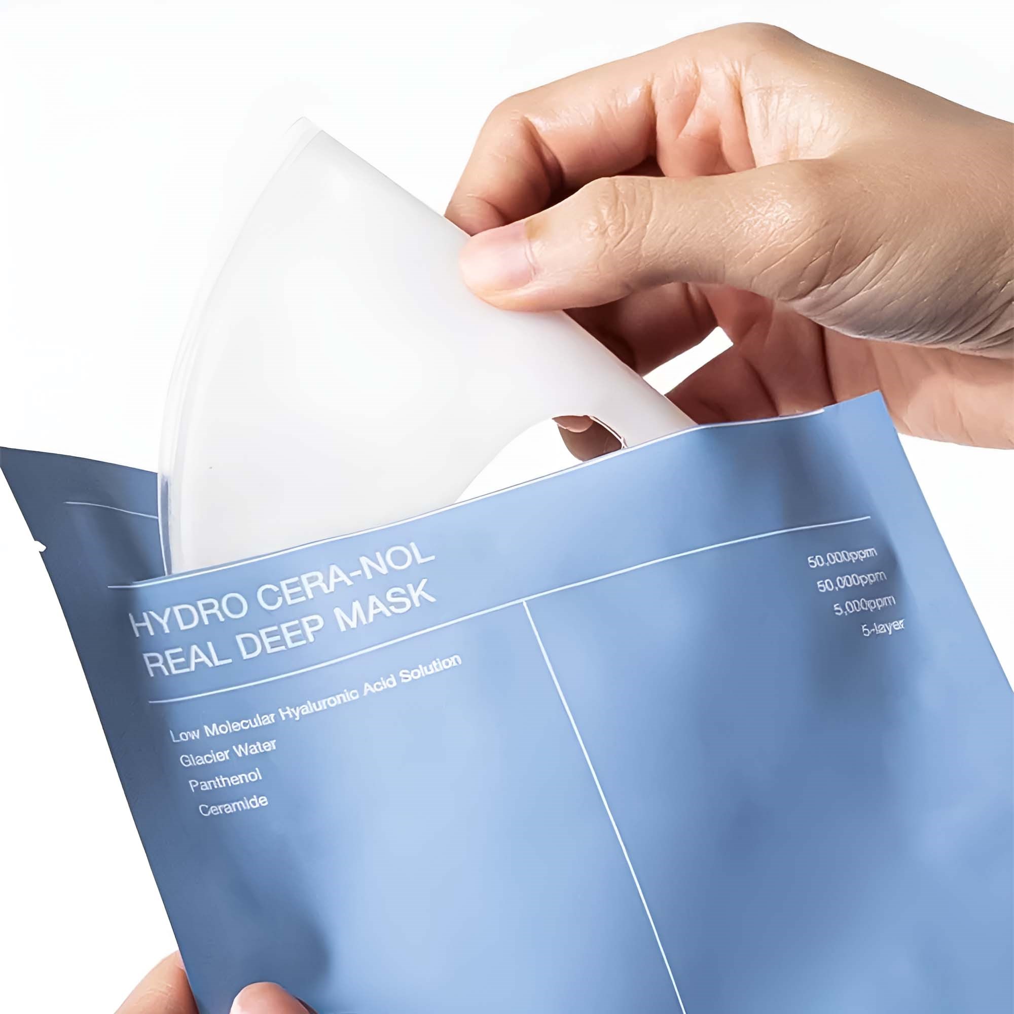 Hydra Cera-nol Real Deep Mask to luksusowe domowe spa z widocznymi efektami już po pierwszym użyciu. Maska wzbogacona unikalnym kompleksem Cera-Nol wzmacnia barierę ochronną skóry, intensywnie nawilża do 150 godz. i poprawia jej naturalną ochronę i odporność.Kompleks Cera-Nol z pantenolem, oligo-kwasem hialuronowym i pięcioma rodzajami ceramidów koi, odbudowuje i działa przeciwzapalnie. Składniki te skutecznie łagodzą zaczerwienienia i podrażnienia, dzięki czemu maska jest idealna dla wrażliwej, suchej i zestresowanej skóry.Formuła wzbogacona 50 000 ppm czystej, bogatej w minerały wody lodowcowej z Alp odżywia skórę i ułatwia wchłanianie składników aktywnych. Masło shea i gliceryna tworzą ochronną warstwę, zmniejszając utratę wilgoci i pozostawiając skórę miękką, elastyczną i świeżą.Zaawansowana formuła z oligo-kwasem hialuronowym dociera głęboko do skóry, zapewniając efekt wypełnienia i dodając blasku. Dzięki lepszej penetracji oligo-kwas hialuronowy wnika głębiej niż tradycyjny kwas hialuronowy, skutecznie wiążąc wilgoć w warstwach skóry.Sposób użycia:1. Po oczyszczeniu przygotuj skórę tonikiem lub serum.2. Otwórz opakowanie i usuń folię ochronną z dolnej maski. Nałóż maskę, dopasowując ją do ust.3. Usuń folię ochronną z górnej maski, dopasuj ją do oczu i nałóż.4. Pozostaw maskę na co najmniej 3–4 godz. lub do momentu, aż stanie się przezroczysta. Następnie ostrożnie usuń.