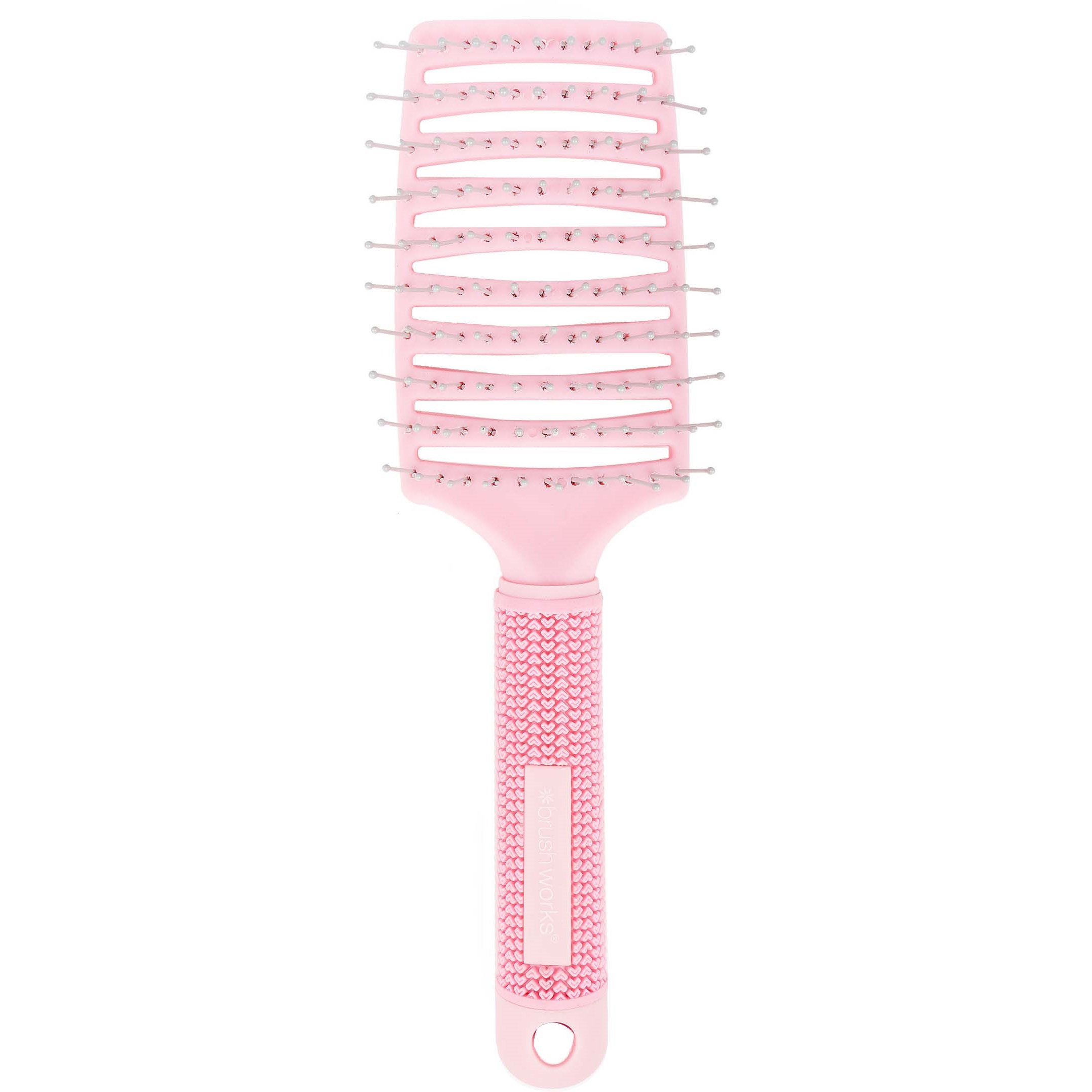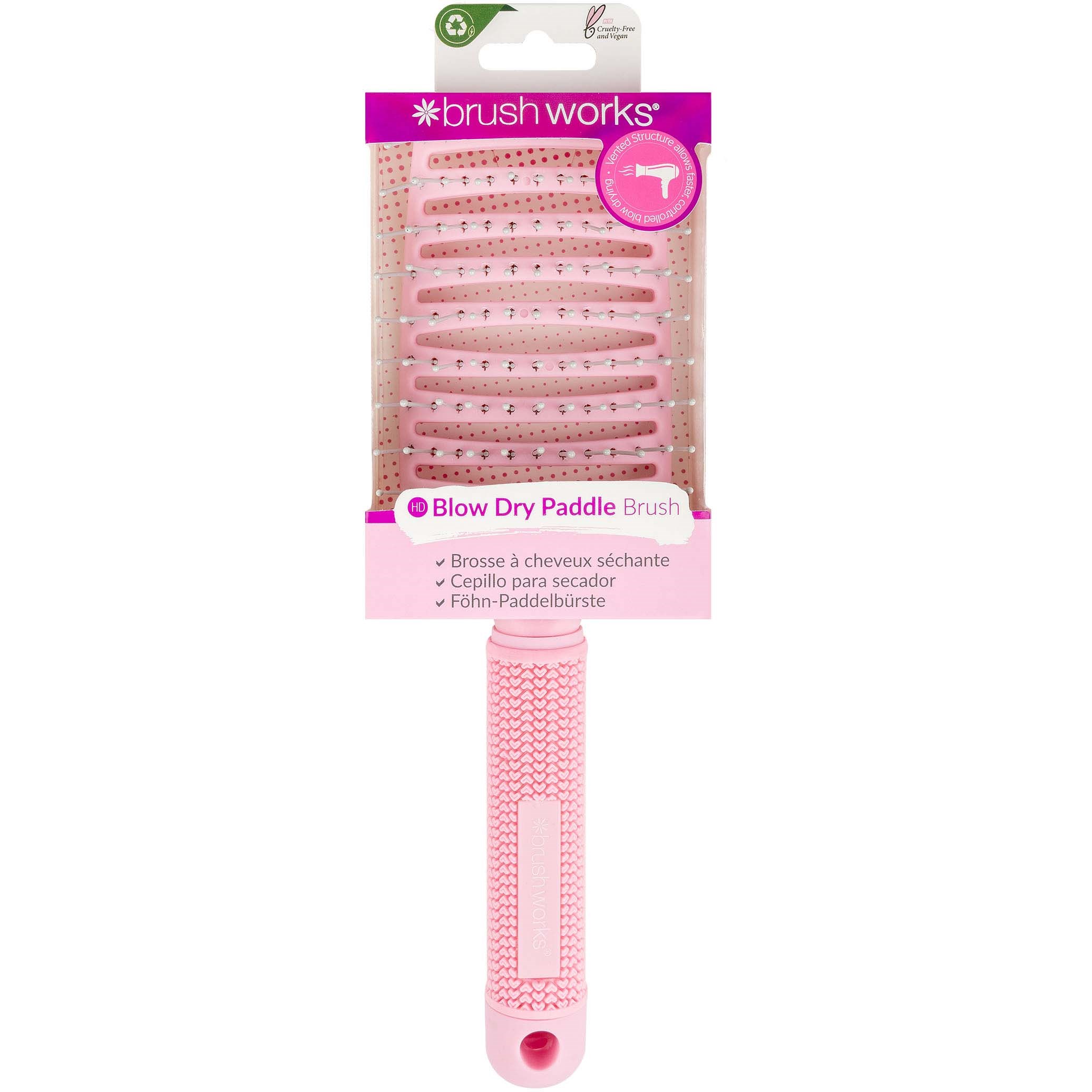 Osiągnij idealną fryzurę dzięki Brushworks Blow Dry Paddle Brush, szczotce wyposażonej w łatwą do uchwycenia, miękką w dotyku rączkę i elastyczne, miękkie włosie ułożone w rozstawionych rzędach, pozwalające na ich bezbolesne rozplątywanie i delikatnie masujące skórę głowy. Szczotka skraca proces suszenia włosów i pobudza krążenie w mieszkach włosowych. Świetnie sprawdza się do wszystkich typów włosów oraz do włosów mokrych i suchych.