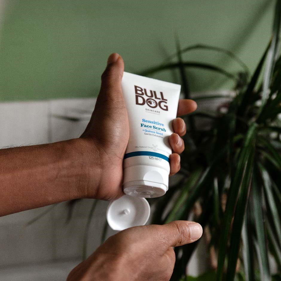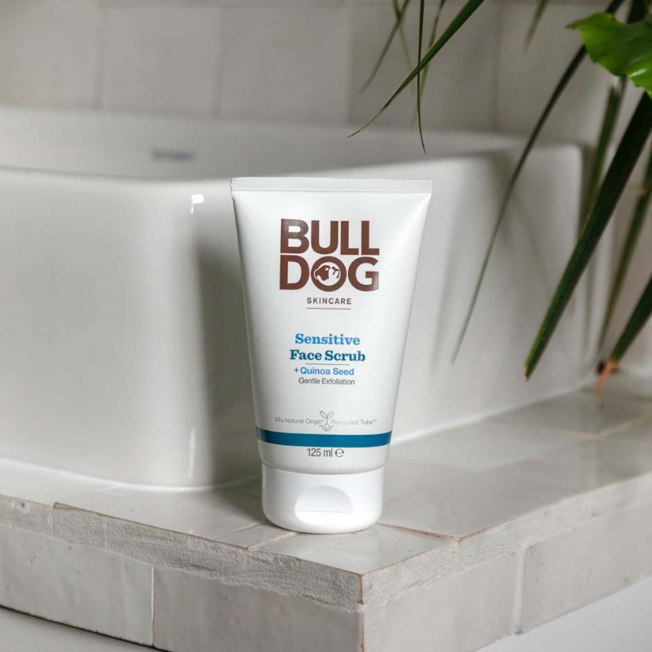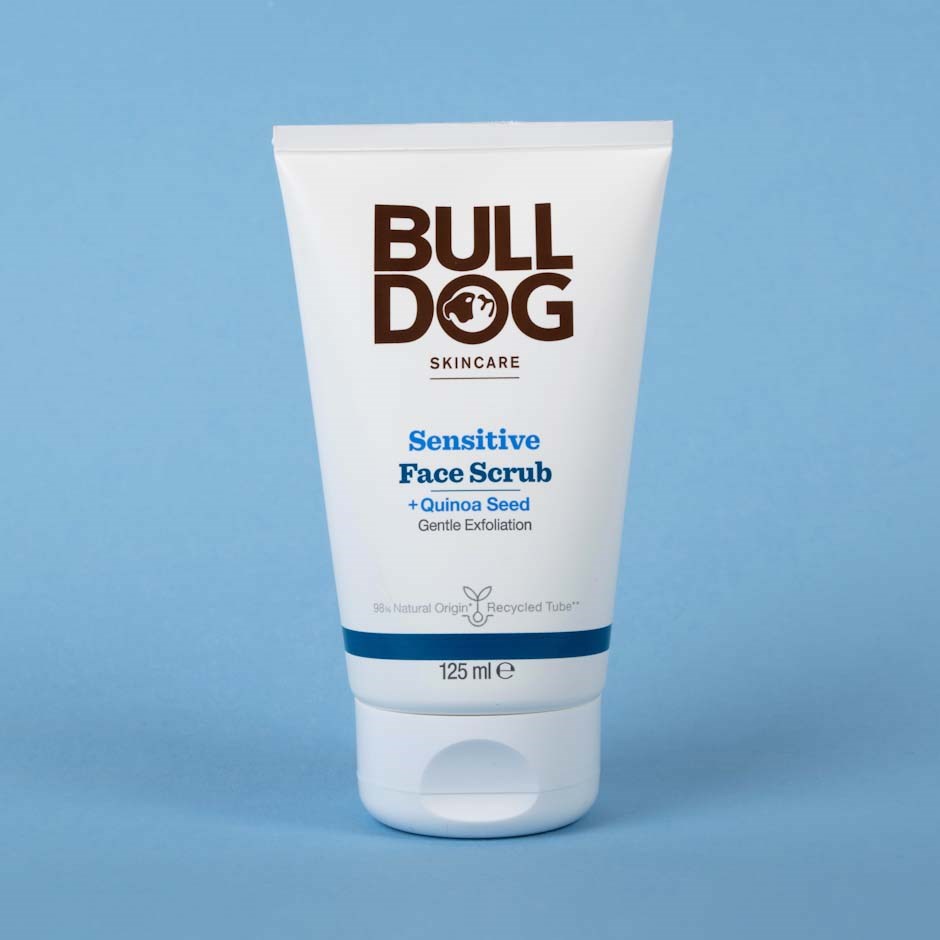 Bulldog Sensitive Face Scrub to bezzapachowy peeling do twarzy dla mężczyzn z wrażliwą skórą. Zawiera 98% składników pochodzenia naturalnego, w tym nasiona komosy ryżowej, które działają jako naturalny środek złuszczający, delikatnie usuwając martwy i suchy naskórek. Peeling został stworzony, aby łagodnie pozbywać się zrogowaciałego naskórka. Produkt zawiera również wierzbownicę, unikalną roślinę z północno-kanadyjskich prerii, która wykształciła silne, wielofunkcyjne właściwości fitochemiczne, aby przetrwać w trudnym klimacie. W Bulldog wierzymy w tworzenie produktów wysokiej jakości, które uwalniają prawdziwy potencjał składników pochodzenia naturalnego. – Bezzapachowy. – Wegański. – Opakowanie produktu składa się w co najmniej 62% z recyklingowanego plastiku konsumenckiego (PCR) oraz w co najmniej 27% z bioplastiku roślinnego wykonanego z odnawialnego materiału z trzciny cukrowej.Sposób użycia:Użyj po oczyszczeniu, aby zachować strukturę skóry i przygotować ją do nawilżenia i pielęgnacji. Zalecamy stosowanie peelingu 2–3 razy w tygodniu.Namocz twarz ciepłą wodą.Wyciśnij około monety 1 zł peelingu na czyste opuszki palców i delikatnie wmasuj w skórę, uważając, aby unikać okolic oczu.Dokładnie spłucz ciepłą wodą.Twoja skóra jest teraz złuszczona i gotowa na gładkie golenie lub na nałożenie nawilżających produktów, takich jak Sensitive Moisturiser.Używaj peelingu Bulldog do wrażliwej skóry nie więcej niż 3 razy w tygodniu, aby głęboko oczyścić i usunąć martwy oraz suchy naskórek.Bulldog zaleca rutynę pielęgnacyjną składającą się z żelu do mycia twarzy, peelingu do twarzy i kremu nawilżającego.