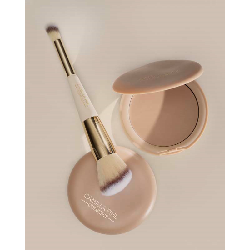 Camilla Pihl Cosmetics Bronzer Balm to sekret promiennej, zdrowo wyglądającej cery. Aplikacja to chwila zarówno pielęgnacji, jak i elegancji! Ten wszechstronny balsam brązujący dodaje skórze ciepła i zapewnia efekt dewy, idealnie stapiając się z cerą. Dzięki kremowej, aksamitnej konsystencji żelu, która jest lekka i naturalna, nasz bronzer zapewnia możliwość budowania krycia oraz modelowania. Unikalność tego bronzera tkwi w jego formule, która zawiera składniki pielęgnacyjne oraz daje piękny, słoneczny efekt. Jedwabista konsystencja sprawia, że balsam brązujący to luksusowy akcent w Twojej rutynie urodowej. Aby ułatwić aplikację, stworzyliśmy dopasowany pędzel Bronzer Duo – z mini pędzlem do precyzyjnego konturowania wokół nosa i oczu, a z drugiej strony, większym pędzlem do konturowania policzków i dodawania ciepła reszcie twarzy.Sposób użycia: Aby uzyskać promienny blask, zacznij od czystej, nawilżonej skóry twarzy. Aplikuj Camilla Pihl Cosmetics Bronzer Balm małym pędzlem do precyzyjnego konturowania wokół nosa i oczu, a następnie płynnie przejdź do większego pędzla do policzków i reszty twarzy. Buduj produkt według własnych upodobań, aby uzyskać idealne ciepło, a następnie delikatnie blenduj dla naturalnego, dewy wykończenia.