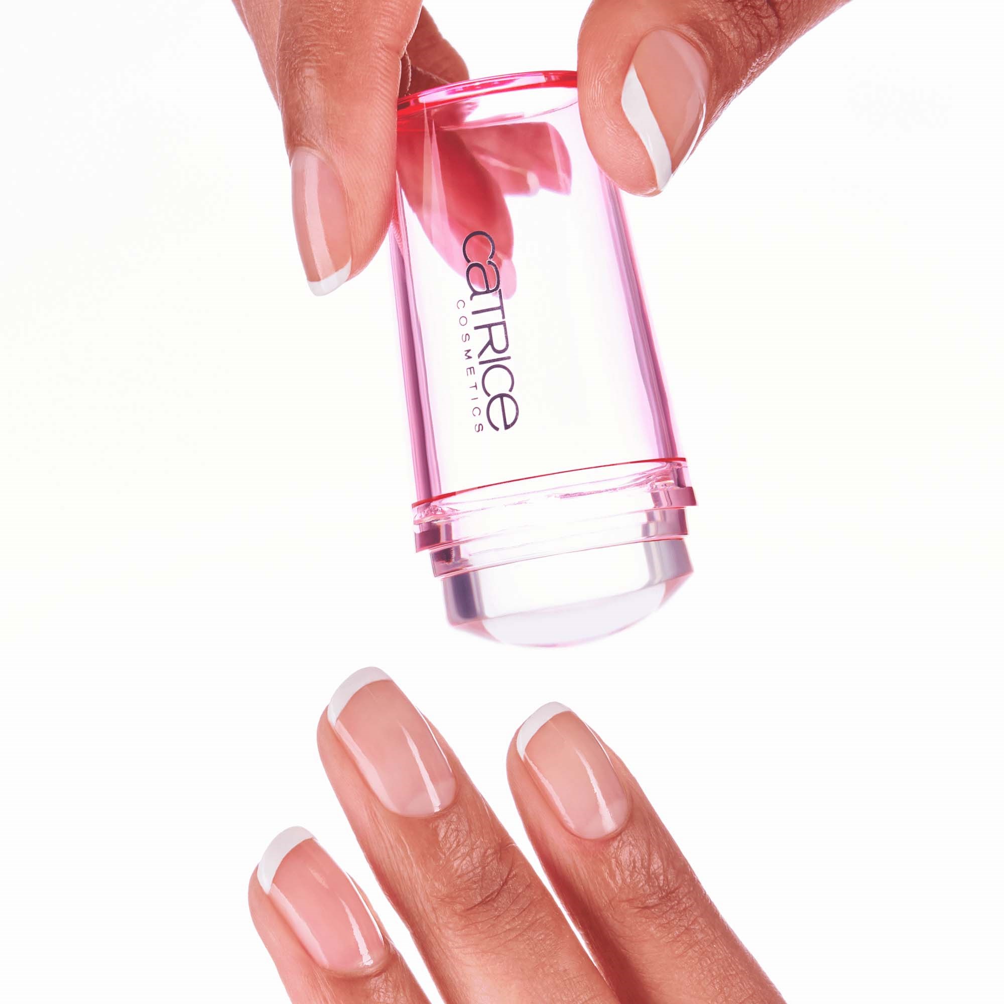 Uzyskaj efekt francuskiego manicure'u jak z salonu z Catrice French Mani Stamper. To narzędzie w przezroczystym różowym kolorze jest wyposażone w poduszeczkę, na którą możesz nałożyć wybrany lakier do paznokci, aby stworzyć idealny francuski manicure. Z łatwością usuniesz resztki lakieru z poduszeczki, używając odrobiny taśmy klejącej.
