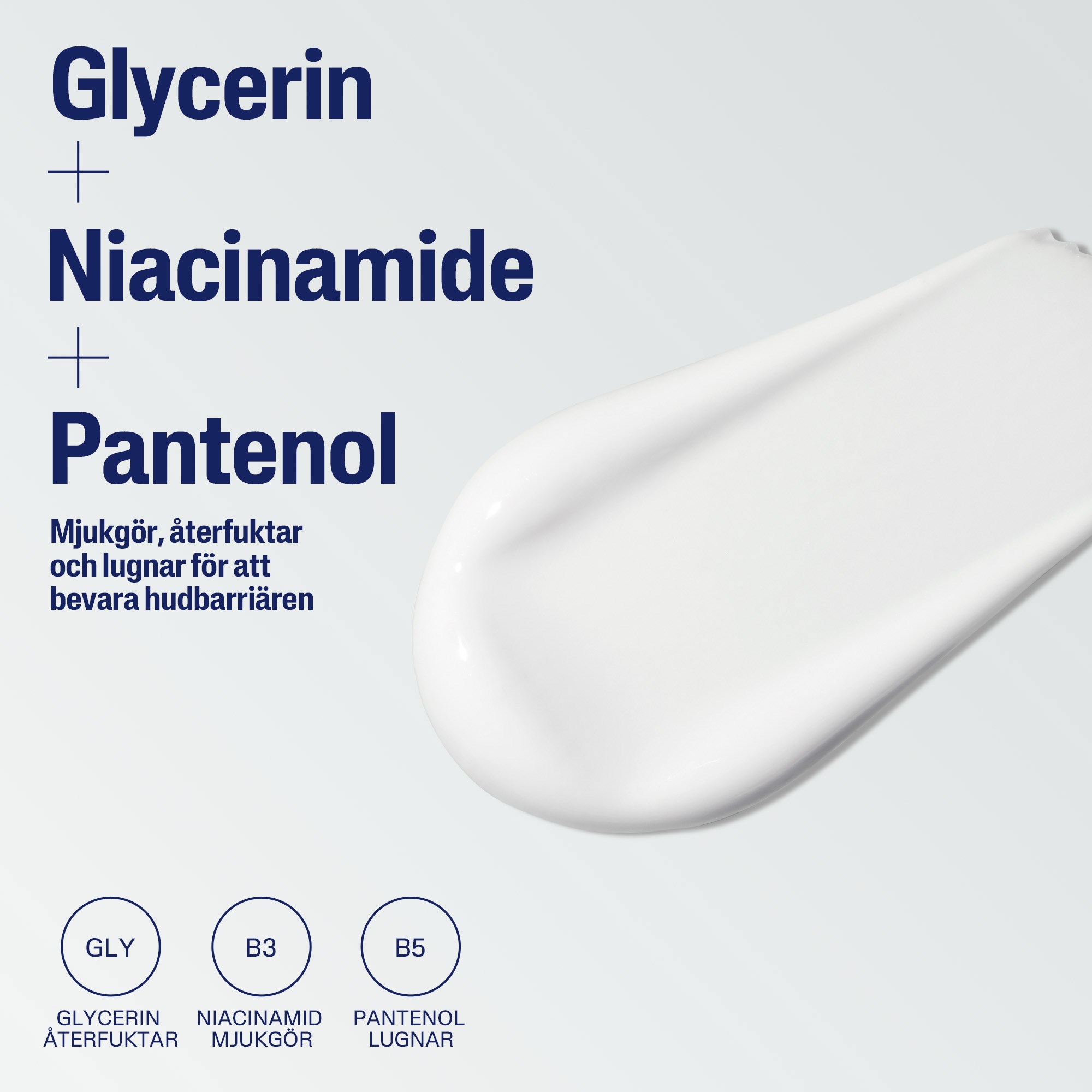 Specjalnie opracowana formuła zawiera wspomaganą przez dermatologów mieszankę niacynamidu (witamina B3), pantenolu (witamina B5) i nawilżającej gliceryny, które poprawiają sprężystość skóry wrażliwej.