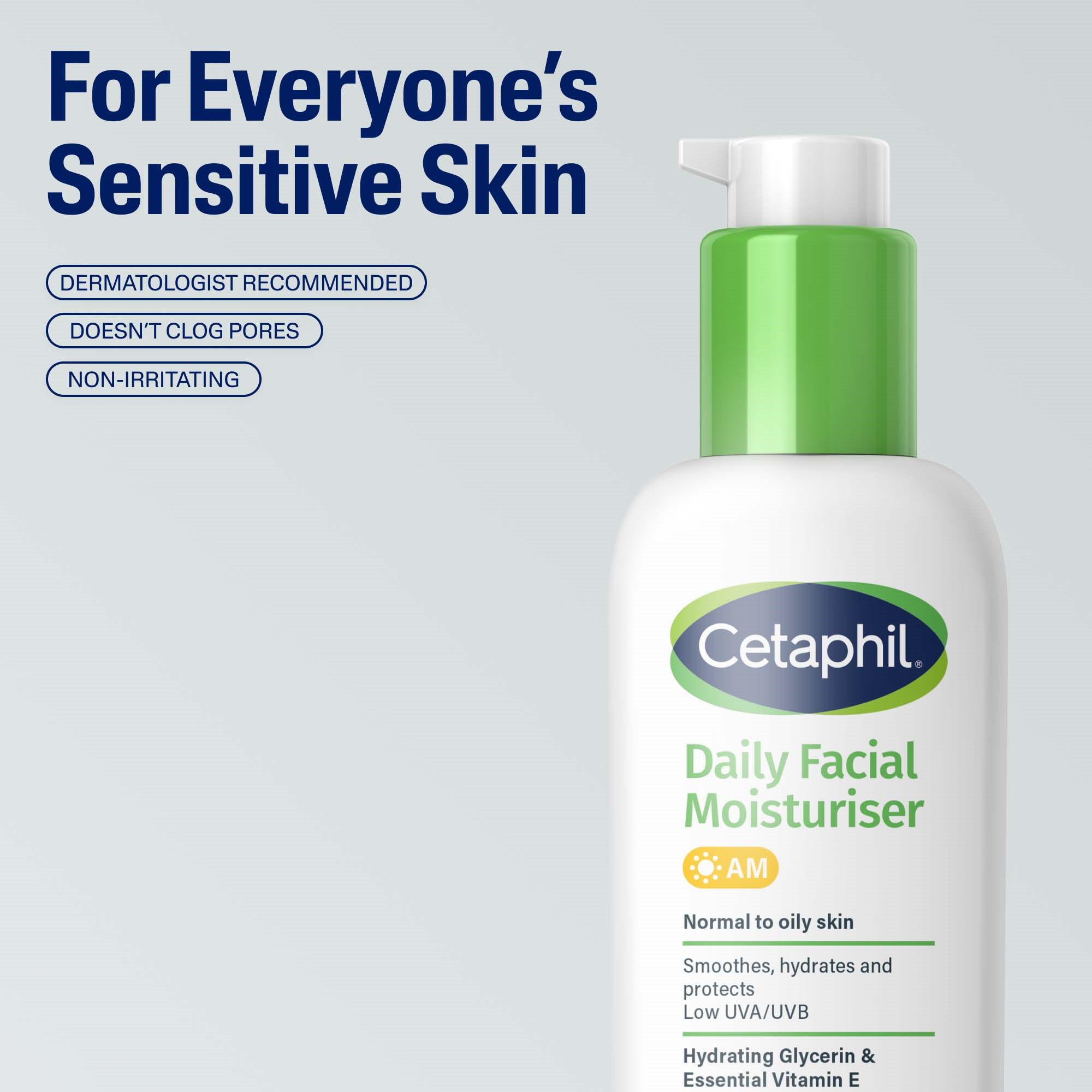 Cetaphil Daily Facial Moisturizer to lekki, nietłusty krem nawilżający, który odżywia i nawilża skórę, chroniąc ją jednocześnie przed słońcem. Pozwala skórze oddychać, nie zatykając porów. Daily Facial Moisturizer jest odpowiedni dla skóry normalnej i tłustej.