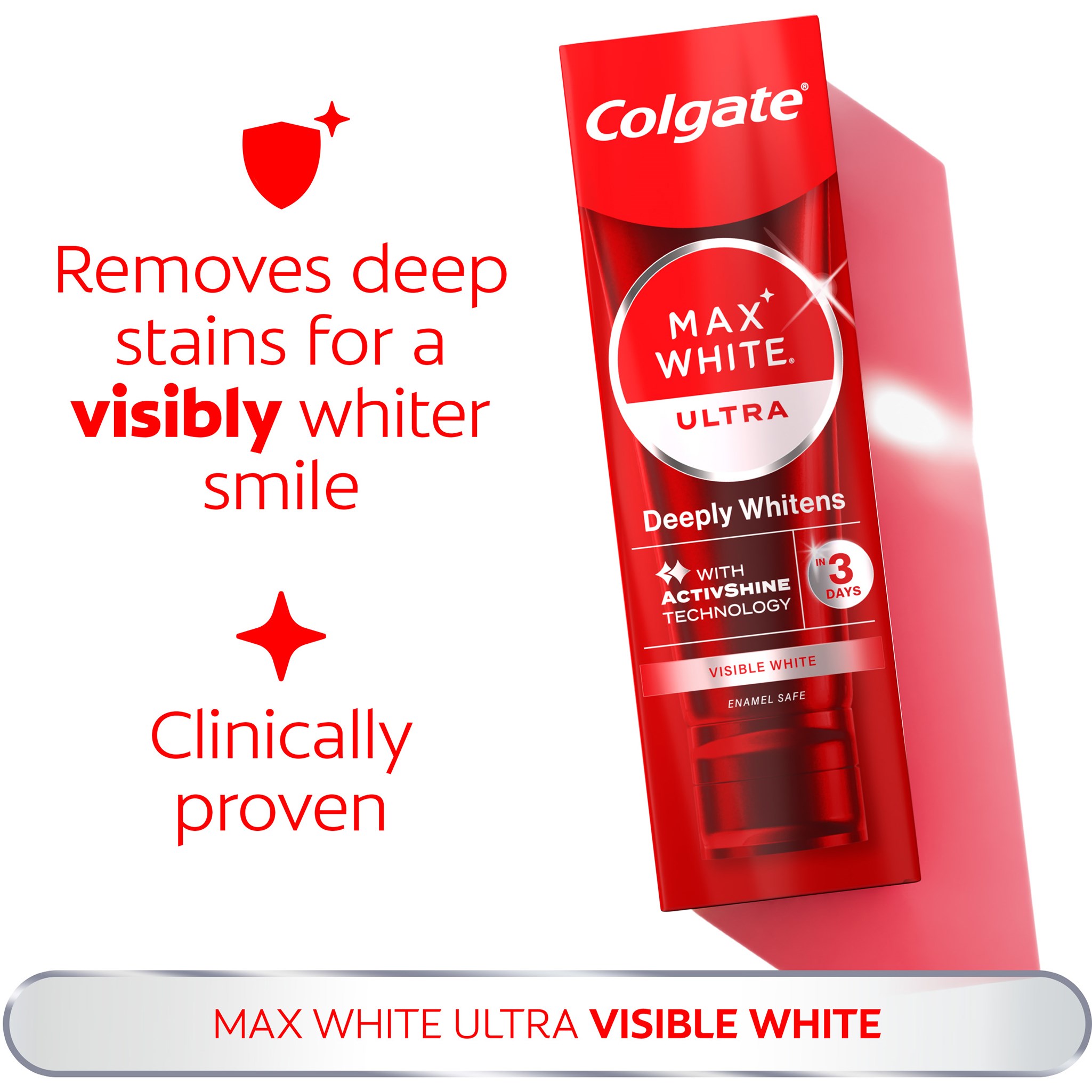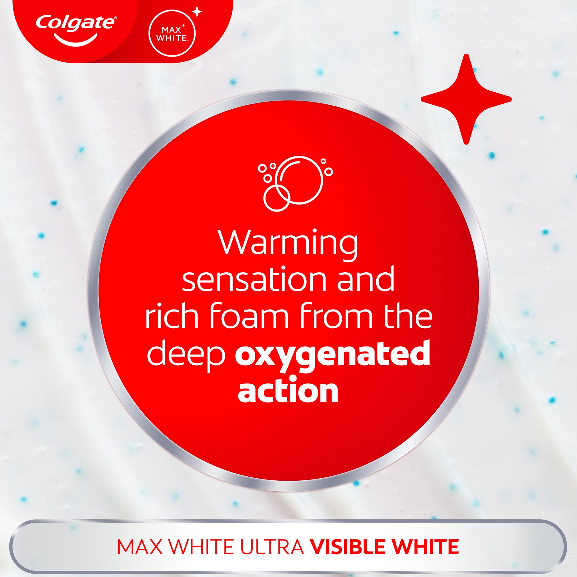 Colgate Max White Ultra Active Foam to głęboko oczyszczająca pasta do zębów, która dzięki nowej, opatentowanej technologii sprawia, że zęby stają się bielsze już po 3 dniach stosowania. Produkt ma o 25% większą skuteczność w usuwaniu przebarwień i działa również prewencyjnie.Sposób użycia:Szczotkuj zęby 2 razy dziennie przez 2 minuty.