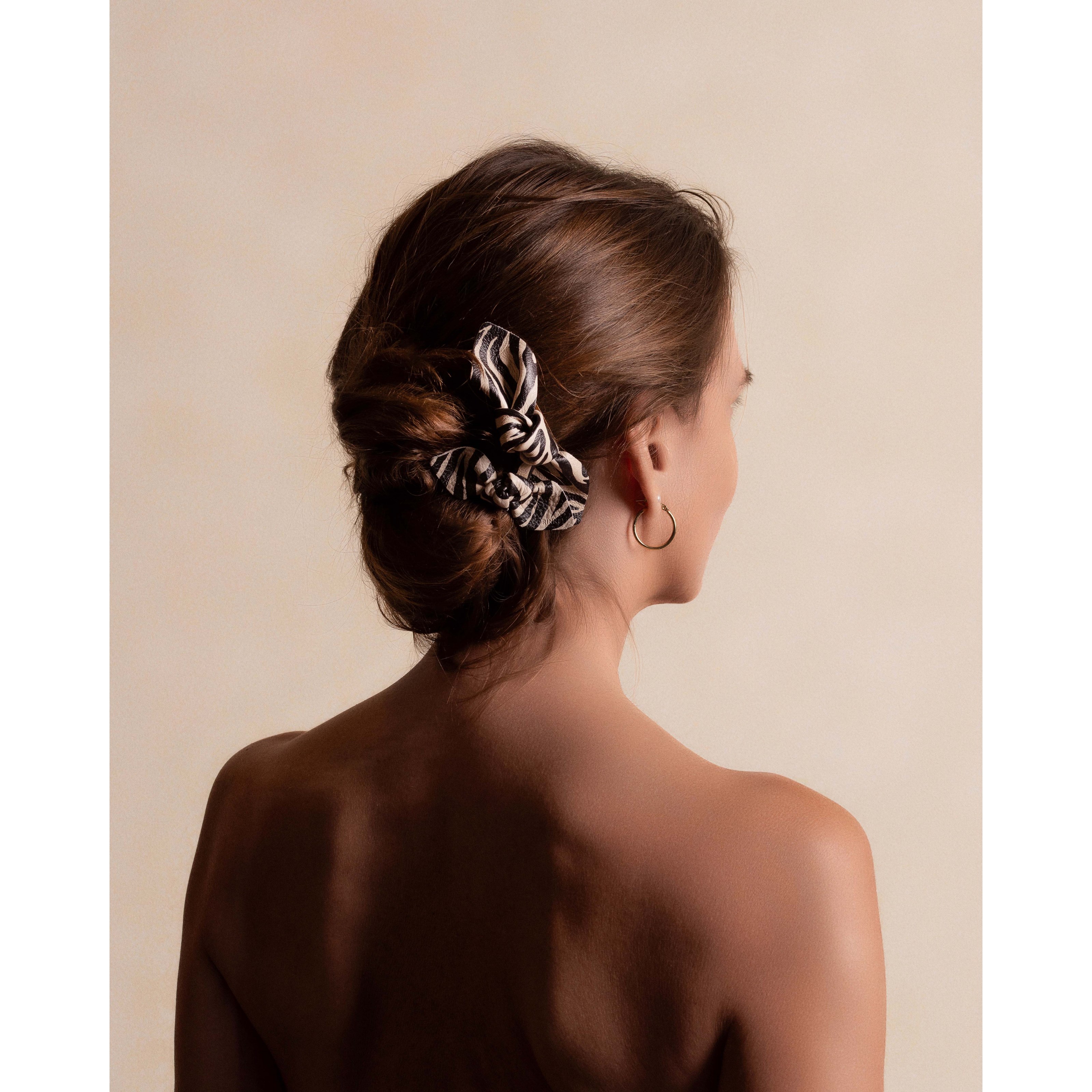 Mała kokarda dla tych, którzy chcą dodać coś bardziej subtelnego niż standardowy rozmiar. Ręcznie wykonana z włoskiej skóry, z metalowym klipsem. Na imprezę połącz różne rozmiary w jednej fryzurze.