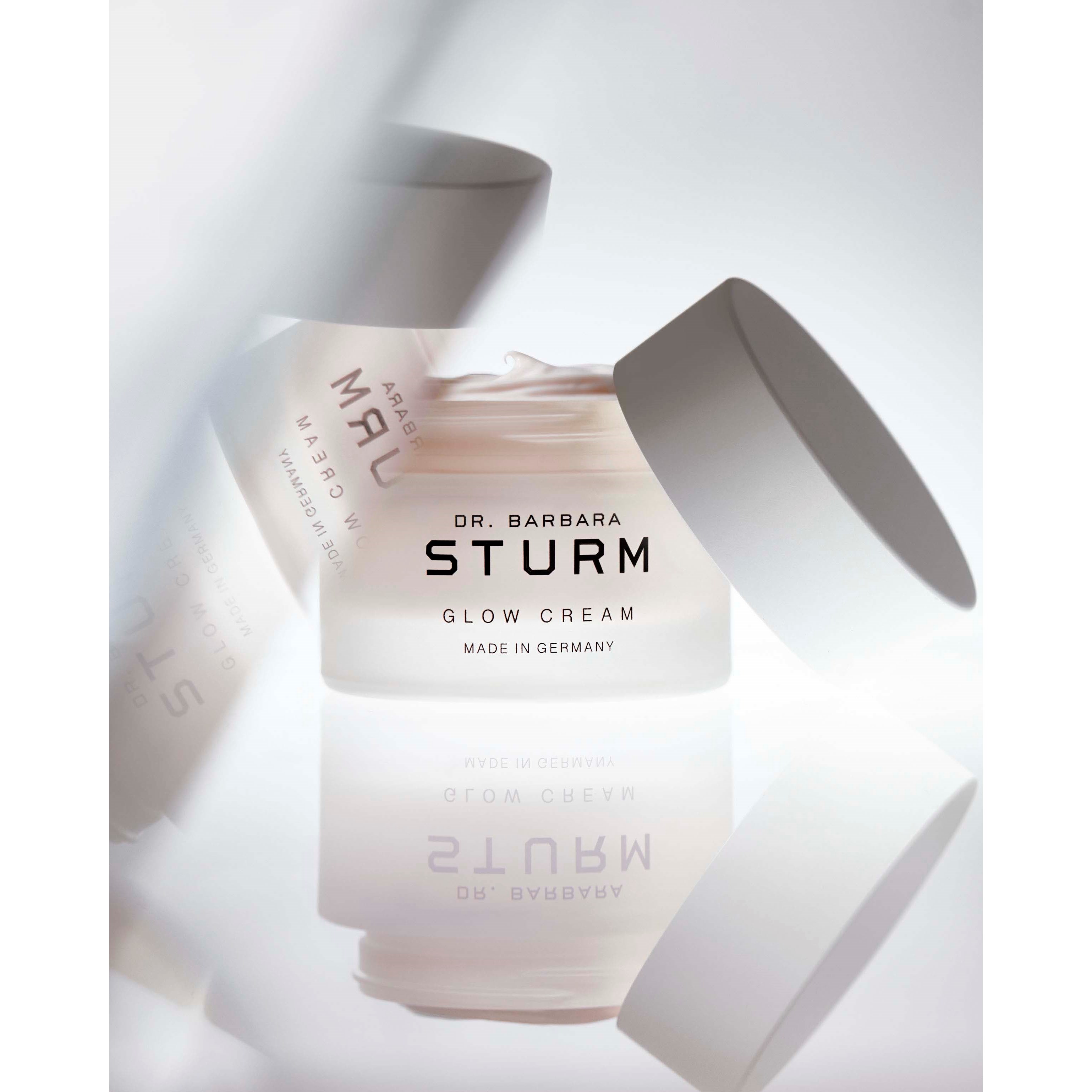 Krem do twarzy, który odżywia skórę, przywracając jej naturalny blask.Krem Glow Cream Dr. Sturms jest inspirowany wielokrotnie nagradzanymi kroplami Glow Drops i stanowi nawilżający krem przeciwstarzeniowy, który zapewnia natychmiastowe nawilżenie oraz dodaje skórze promiennego blasku, podkreślając efekt STURMGLOW™. Krem jest wzbogacony o kwas hialuronowy, masło shea i olej z nasion słonecznika, które nawilżają skórę cennymi lipidami, jednocześnie wygładzając drobne linie i zmarszczki. Ekstrakt z dzikiej róży wygładza pory, poprawiając strukturę i wygląd skóry, podczas gdy korzeń rdestu wężownika dodaje gładkości i zwiększa blask, zapewniając długotrwały efekt glow.Krem Glow Cream jest również wzbogacony o refleksyjne pigmenty perłowe, które nadają skórze piękny, perłowy blask. Idealny dla każdego, kto pragnie zwiększyć naturalną witalność skóry zarówno natychmiastowo, jak i na dłuższą metę, dzięki zaawansowanym składnikom odżywczym i nawilżającym. Formuła jest bezzapachowa i odpowiednia dla wszystkich typów skóry, w tym wrażliwej.Sposób użycia:Nałóż krem Glow Cream równomiernie na twarz, szyję i dekolt po oczyszczeniu lub po nałożeniu ulubionego serum Dr. Barbary Sturm.