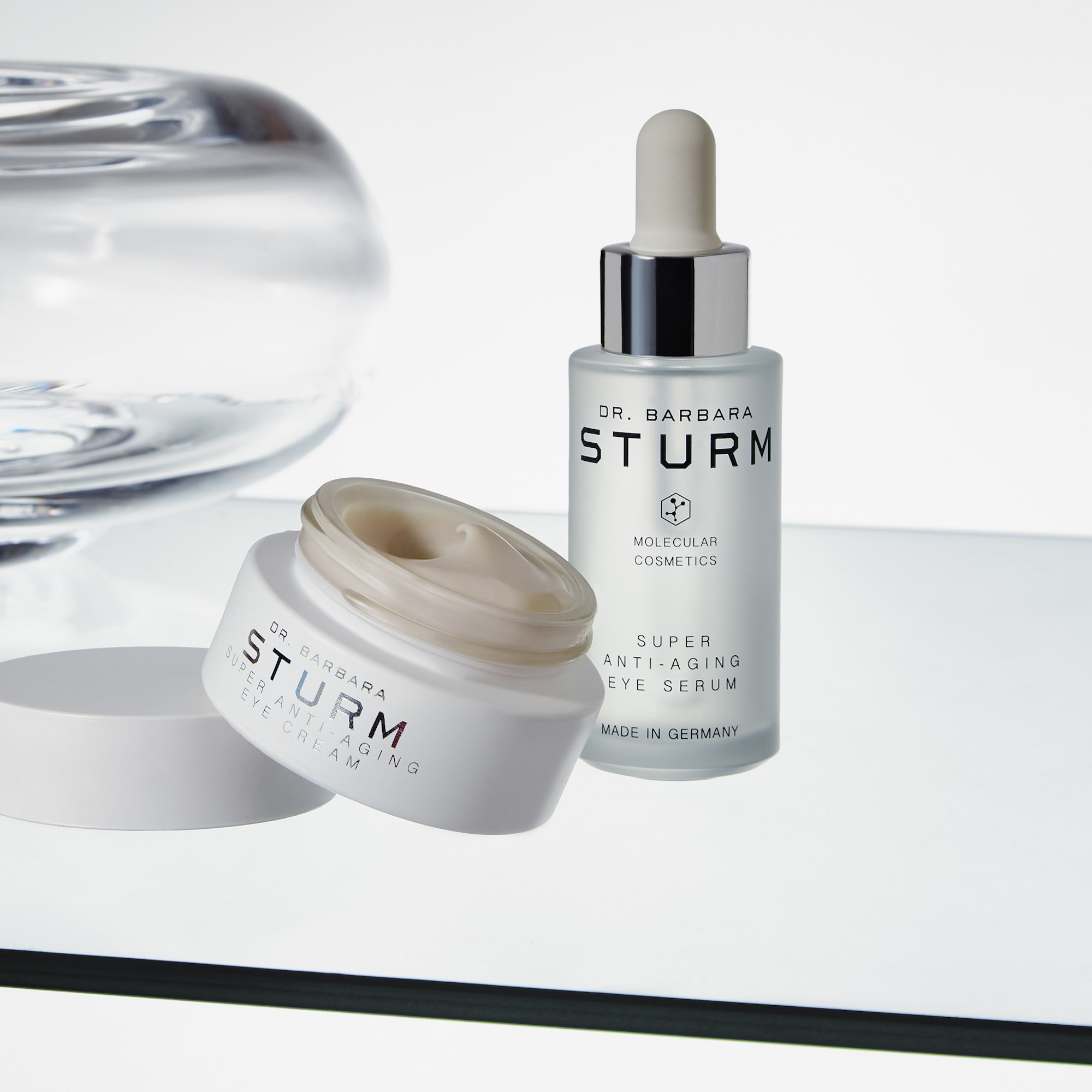 Serum pod oczy SUPER ANTI-AGING od Dr. Barbary Sturm, będące częścią kolekcji SUPER ANTI-AGING COLLECTION, działa na mikrocyrkulację skóry, aby zminimalizować opuchliznę, rozjaśnić i odświeżyć okolice oczu, pozostawiając skórę nawilżoną, gładką i pełną blasku. Skóra wokół oczu jest najcieńsza na ciele i szczególnie wrażliwa na oznaki widocznego starzenia, takie jak drobne linie, "kurze łapki", suchość i odwodnienie. Opuchlizna i cienie pod oczami, które czasami mają podłoże genetyczne, mogą być pogarszane przez ekspozycję na słońce, brak snu, styl życia i stres, a także mogą być związane z słabą cyrkulacją krwi. – Polisacharydy – zmniejszają widoczność cieni pod oczami i rozjaśniają okolice oczu- Ekstrakt z czerwonych alg – minimalizuje pojawianie się worków pod oczami i opuchlizny, co daje natychmiastowy efekt anti-fatigue. – Ekstrakt z Calanthe – napina wrażliwą skórę i wspiera produkcję kolagenu oraz elastyny- Ekstrakt z portulaki – potężny składnik przeciwko przedwczesnemu starzeniu, który pomaga łagodzić podrażnienia i odświeża okolice oczu- Glukonolakton i kwas hialuronowy – zapewniają intensywne nawilżenie i pomagają skórze zachować wilgoćSposób użycia:Stosuj codziennie, rano i wieczorem. Nałóż jedną do dwóch kropli na palec serdeczny i delikatnie wklep wokół oczu. Następnie nałóż KREM POD OCZY i KREM DO TWARZY od Dr. Sturm. Możesz przechowywać serum pod oczy SUPER ANTI-AGING w lodówce i aplikować je schłodzone, aby wzmocnić efekt minimalizacji opuchlizny i worków pod oczami.
