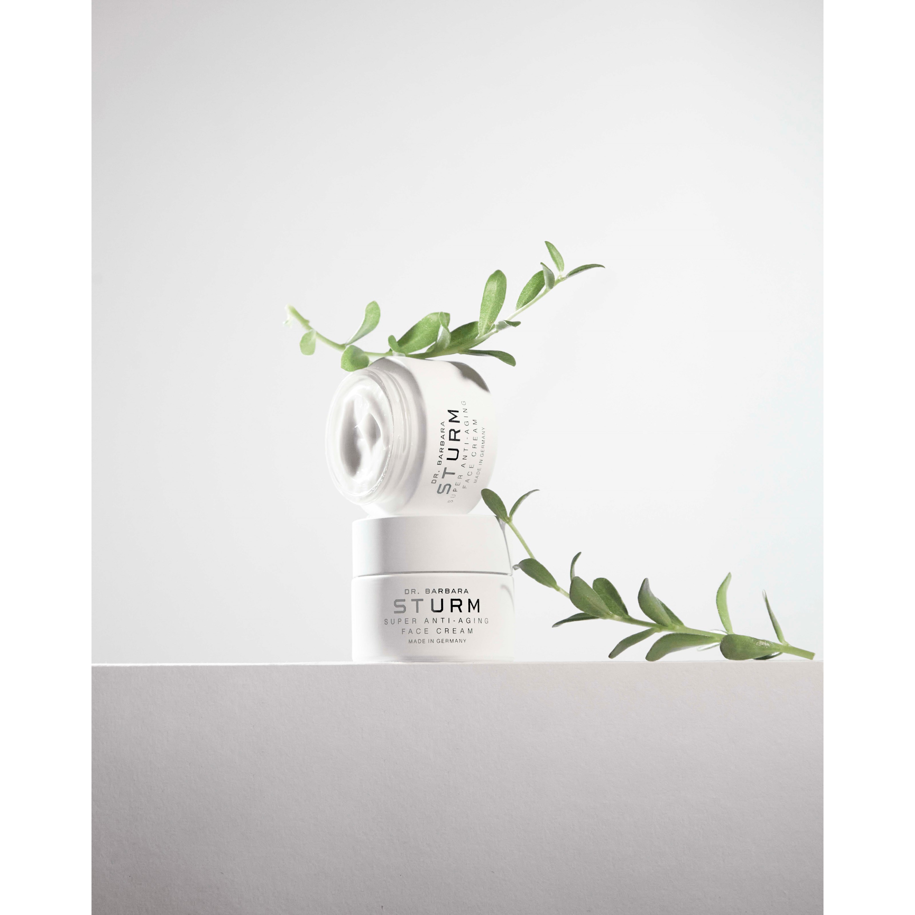 Zaawansowany naukowo SUPER ANTI-AGING FACE CREAM jest ostatecznym, 360-stopniowym przeciwstarzeniowym kremem nawilżającym, który zapewnia zarówno natychmiastowe, jak i długotrwałe, silne rezultaty przeciwstarzeniowe. Dr Sturm stworzył SUPER ANTI-AGING FACE CREAM wykorzystując unikalną biomimetyczną formułę, która naśladuje naturalną barierę ochronną skóry i wzmacnia jej właściwości, jednocześnie wprowadzając silne składniki przeciwstarzeniowe, które wspierają fizjologiczny mechanizm hamowania starzenia się skóry, pomagając zwalczać jego widoczne oznaki. Cząsteczka przeciwstarzeniowa broni skórę, podczas gdy ekstrakt z rdestowca łąkowego przywraca cerze naturalny blask, a przeciwstarzeniowa moc portulaki pomaga bronić się przed uszkodzeniami spowodowanymi przez wolne rodniki. Biopolimery planktonu sprawiają, że skóra wygląda i czuje się bardziej jędrna i elastyczna, podczas gdy wysokie stężenie krótko- i długołańcuchowych cząsteczek kwasu hialuronowego zapewnia fundamentalne i przenikliwe nawilżenie, zmniejszając jednocześnie widoczność drobnych linii i zmarszczek. Bogata w lipidy konsystencja SUPER ANTI-AGING FACE CREAM szybko wchłania się w skórę, jednocześnie długotrwale oddziałując na cerę, pozostawiając ją świeżą, młodzieńczą i promienną.