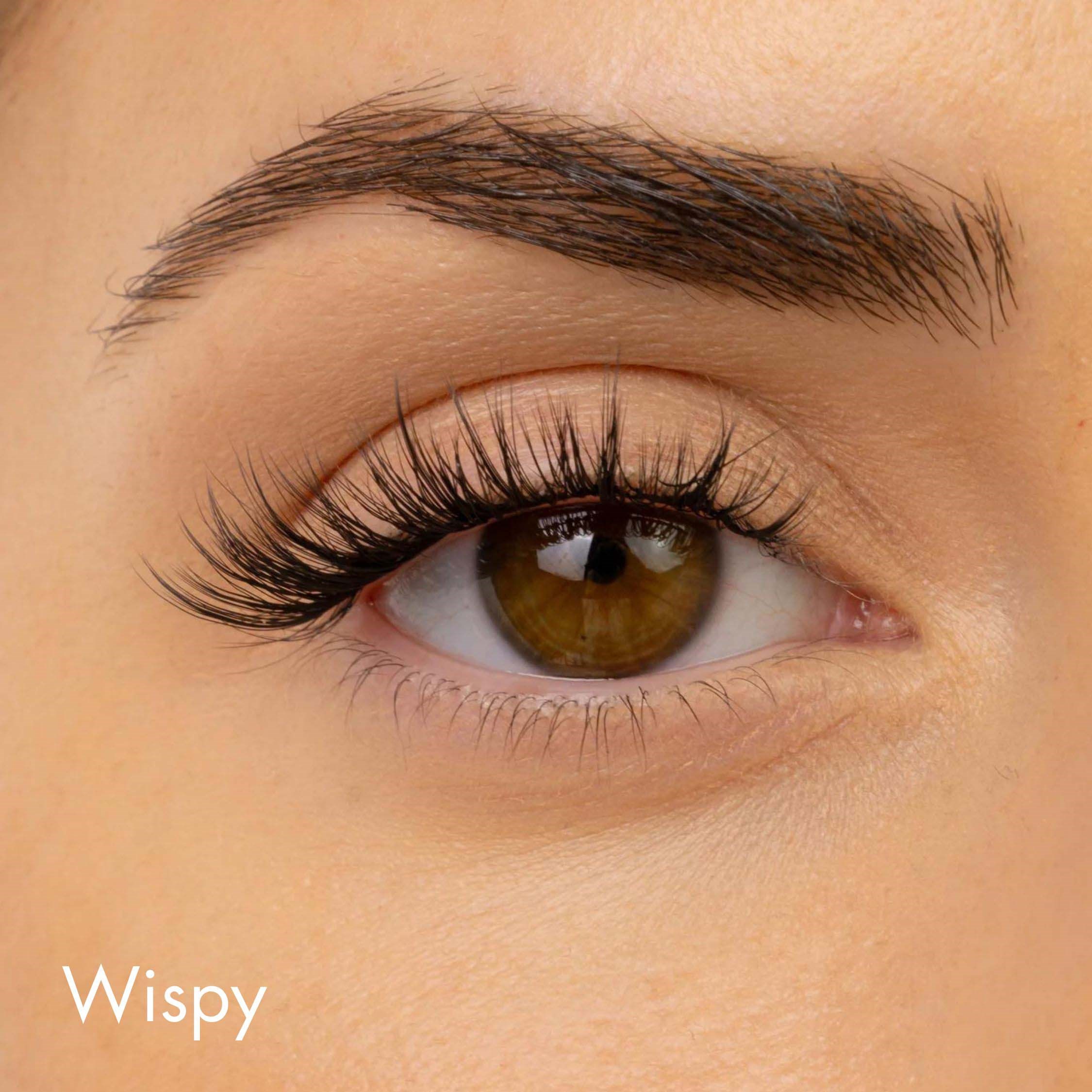 Wispy to rzęsy stworzone z efektem krzyżowania, które zapewniają naturalny, lekki look z subtelną objętością i pięknym podkręceniem. W opakowaniu znajdziesz 36 kępek w 3 długościach: 10 mm, 12 mm i 14 mm.Upewnij się, że rzęsy są czyste, suche i bez olejków. Podkręć je zalotką. Nałóż klej 1–2 mm od nasady pod rzęsami. Użyj aplikatora, aby umieścić kępki w dowolnej kolejności. Na koniec użyj sealera, aby utrwalić rzęsy. Unikaj wilgoci przez 6 godz. po aplikacji.