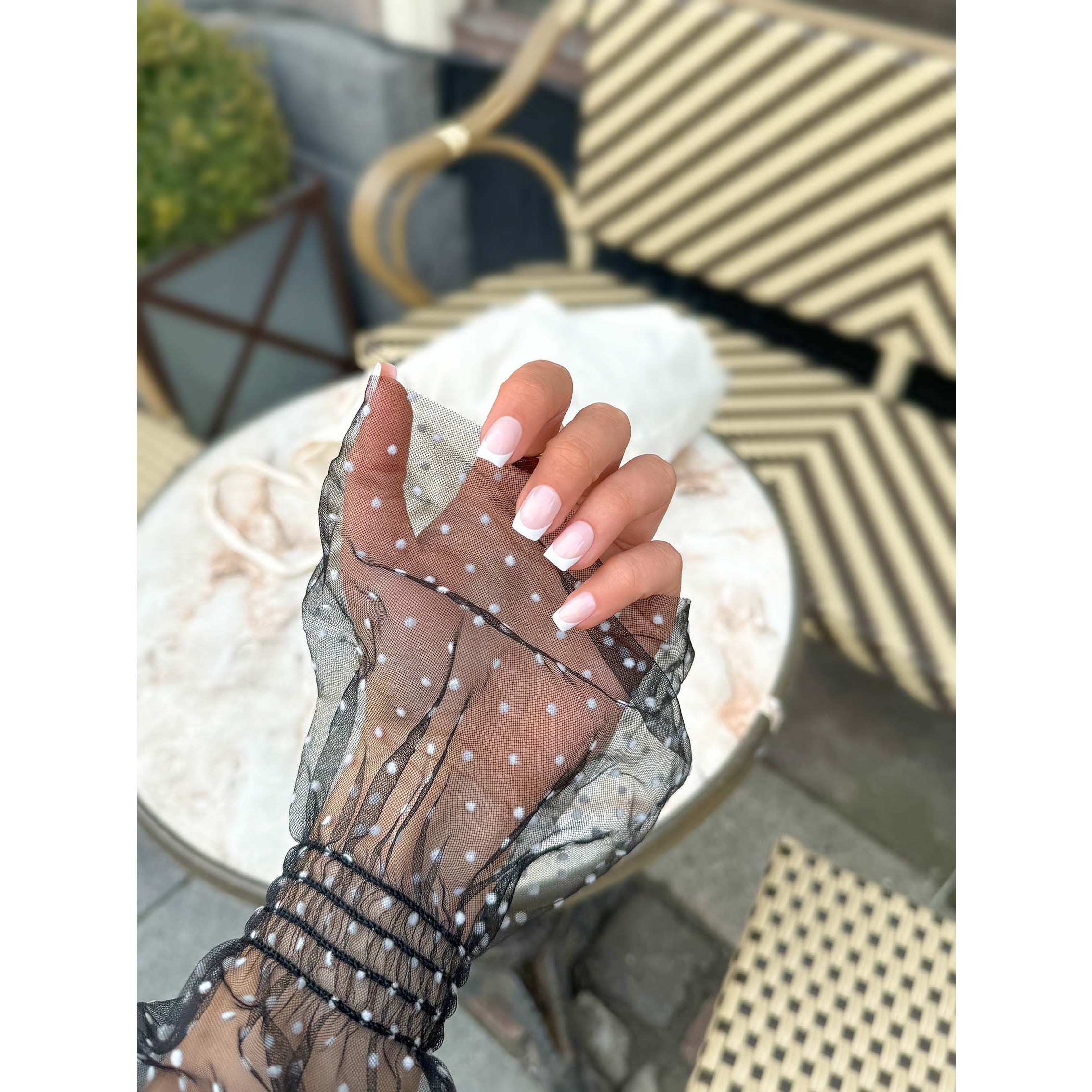 Te klasyczne francuskie tipsy to krótsza, kwadratowa wersja kultowego french manicure. Idealne na co dzień. Zestaw zawiera:- 30 tipsów w 15 rozmiarach, pilnik, klej do paznokci, chusteczka czyszcząca i drewniany patyczekSposób użycia: 1. Nałóż na czyste, suche paznokcie. 2. Odsuń skórki drewnianym patyczkiem i delikatnie spiłuj paznokcie. Oczyść chusteczką. 3. Wybierz tips, który najlepiej pasuje do każdego palca. Upewnij się, że numeracja jest skierowana w stronę końcówki paznokcia. 4. Nałóż klej na naturalny paznokieć i poczekaj 20–30 s, aż klej stanie się lepki. 5. Umieść tips pod skórką i dociśnij kciukiem. Przytrzymaj tips 40–60 s. Usuń:Mocz paznokcie w ciepłej wodzie z mydłem przez 30–40 min, a następnie delikatnie podważ tips z boku. Aby uniknąć uszkodzeń, nigdy nie odrywaj tipsów na siłę.
