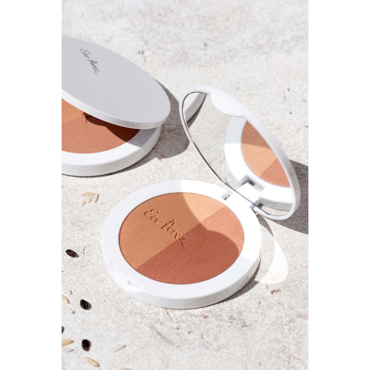 Sposób użycia: Produkt zaleca się nakładać na oczyszczoną skórę twarzy lub podkład ekologicznym, wegańskim pędzlem do różu i bronzera marki Ere Perez przesuwając go po obu stronach palety kolorów. Dzięki temu uzyskasz perfekcyjne połączenie naturalnych kolorów. Strzepnij nadmiar bronzera przed nałożeniem go na policzki. Następnie nanieś produkt na inne obszary, tj. powieki, czoło, broda. Aby uzyskać subtelny efekt, nanoś go ostrożnie. Bronzer jest przeznaczony do nakładania warstwowego – aplikację można powtarzać w zależności od preferencji.
