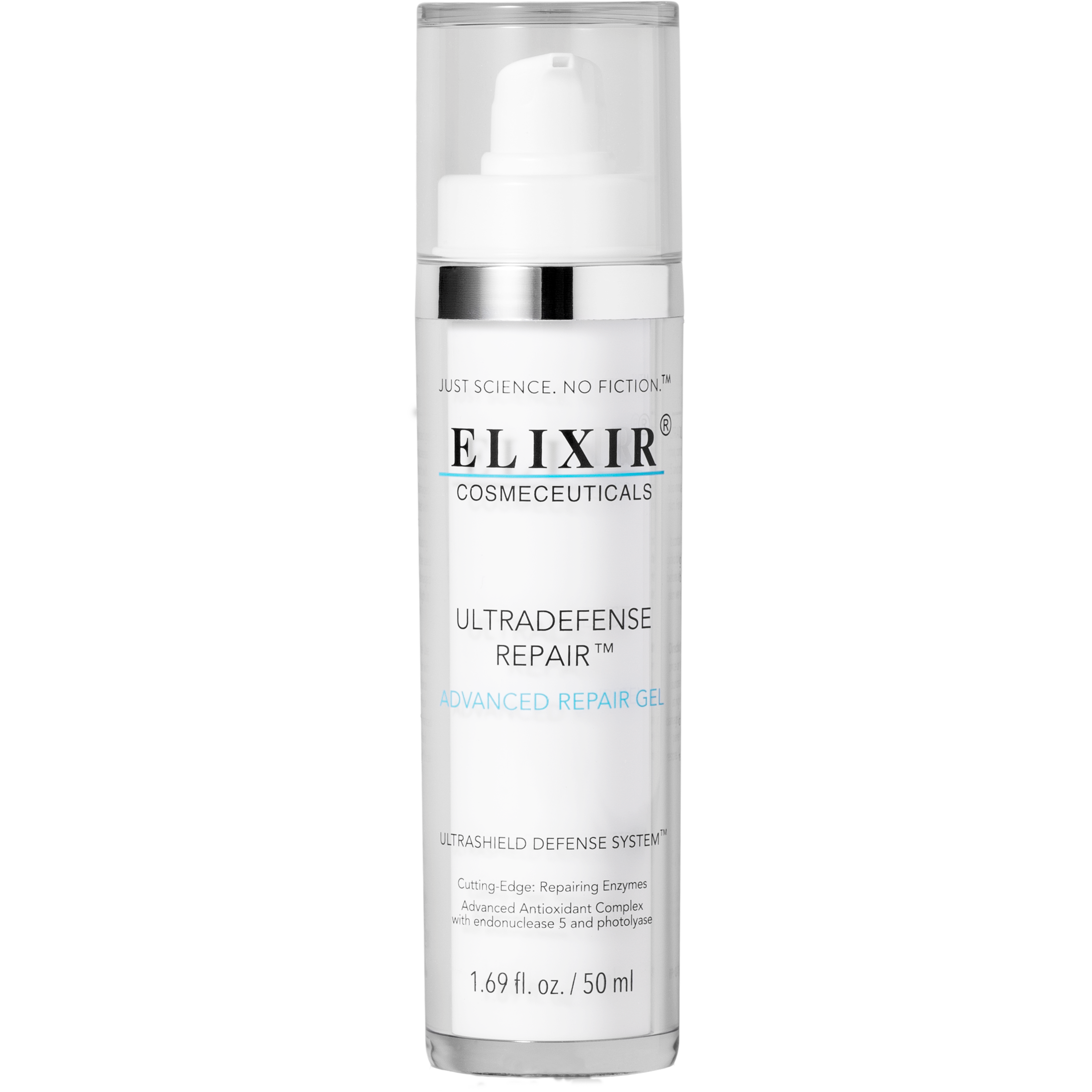 Elixir Ultradefense Repair™ to zaawansowany żel zawierający enzymy naprawcze (endonukleaza 5 i fotoliaza) oraz kofaktory. Produkt nawilża, koi i regeneruje skórę uszkodzoną przez słońce. Aby zapewnić jak najlepsze wniknięcie produktu w strukturę skóry, formuła została wzbogacona o liposomy. Żel zawiera także mieszankę antyoksydantów, w tym wyciąg z miłorzębu japońskiego (ginkgo biloba) oraz aloes. Może być stosowany zarówno przed, jak i po ekspozycji na słońce. W przypadku skóry uszkodzonej przez słońce zaleca się stosowanie każdego wieczoru. Produkt nie zawiera filtrów przeciwsłonecznych.