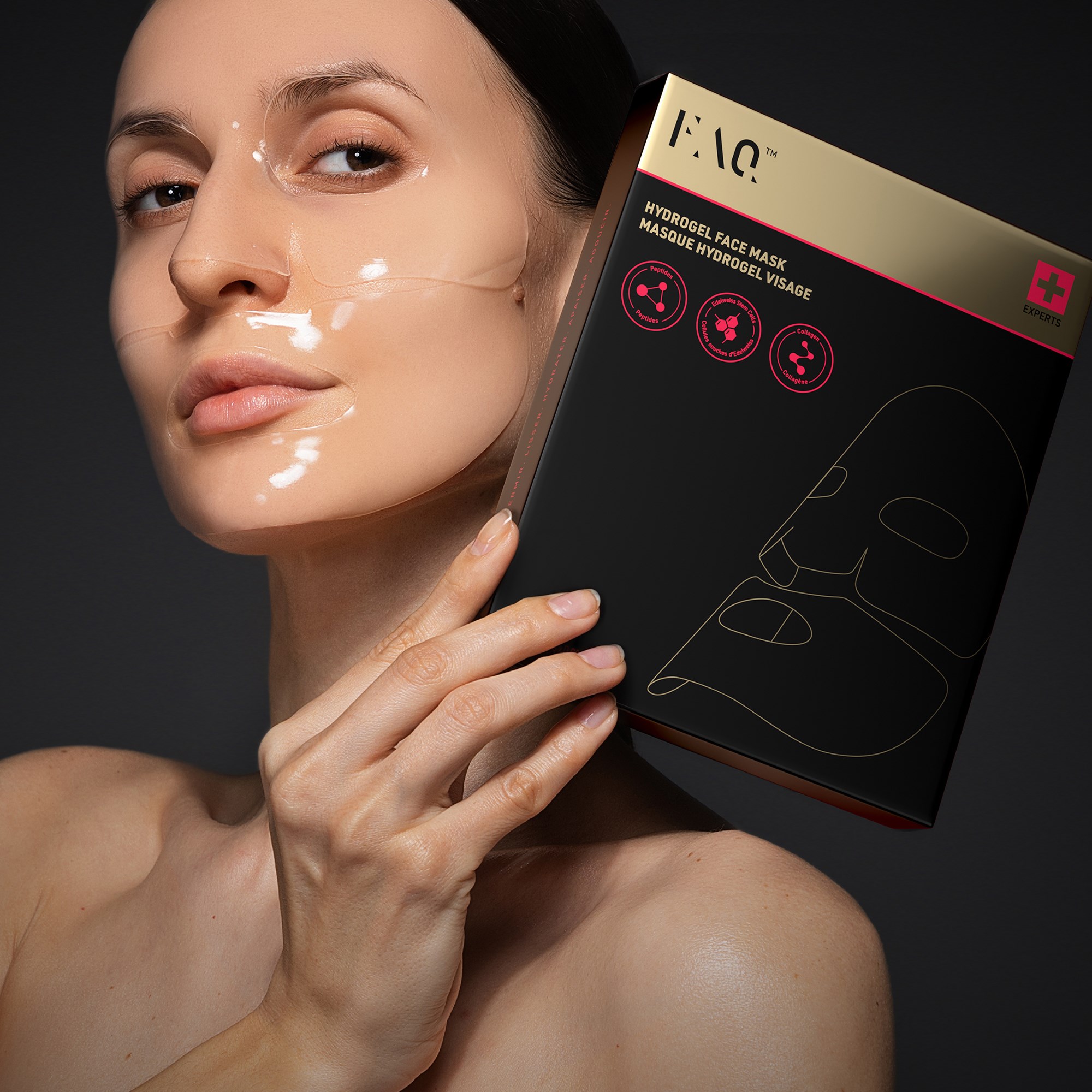 FAQ™ Glass Skin Collagen Mask to maska kolagenowa do twarzy, która zapewnia intensywne nawilżenie, wygładza drobne linie i nadaje skórze promienny, przypominający szkło wygląd. Jej przezroczysty design sprawia, że jest idealna do stosowania pod maską LED, wzmacniając korzyści płynące z terapii światłem oraz poprawiając wchłanianie składników aktywnych.Stworzona, aby współpracować z klinicznymi technologiami anti-aging FAQ™ LED Mask, stymuluje produkcję kolagenu, poprawia strukturę skóry i pomaga zmniejszyć widoczność zmarszczek, plam starczych i nierównego kolorytu skóry, zapewniając widocznie gładszą i młodziej wyglądającą skórę.ZALETY- Zapewnia głębokie nawilżenie i wypełnia skórę- Wygładza drobne linie i zmarszczki, nadając młodszy wygląd- Poprawia elastyczność skóry i stymuluje produkcję kolagenu- Redukuje widoczność plam starczych i wyrównuje koloryt skóry- Poprawia strukturę skóry, pozostawiając jedwabiście gładką powierzchnię- Zwiększa wchłanianie składników aktywnych, zapewniając głębsze odżywienie- Promuje promienny, przypominający szkło blask skórySPECYFIKACJE- Dwuczęściowy design dla lepszego dopasowania- 5 masek w opakowaniu- Materiał hydrożelowy dla lepszego dostarczania składników aktywnych- Kompatybilna z użyciem pod maskami LED do terapii- Testowana dermatologicznie- Nietestowana na zwierzętach- Bez zapachu- Odpowiednia do wszystkich typów skóry- 92% składników pochodzenia naturalnego- Formułowana bez: zapachów, siarczanów (SLS & SLES), parabenów, formaldehydu, substancji uwalniających formaldehyd, ftalanów, olejów mineralnych, palmitynianu retinylu, oksybenzonu, smoły węglowej, hydrochinonu, triclosanu i triclocarbanu Sposób użycia:1. Zacznij od oczyszczenia i osuszenia twarzy.2. Wyjmij maskę z opakowania i nałóż górną część wokół oczu i nosa.3. Nałóż dolną część wokół ust i żuchwy.4. Jeśli używasz jej z maską LED, nałóż ją na maskę hydrożelową i zamocuj za pomocą opaski na głowę.5. Włącz maskę LED i używaj jej przez maksymalnie 15 minut, ciesząc się zabiegiem przez 15 minut.
