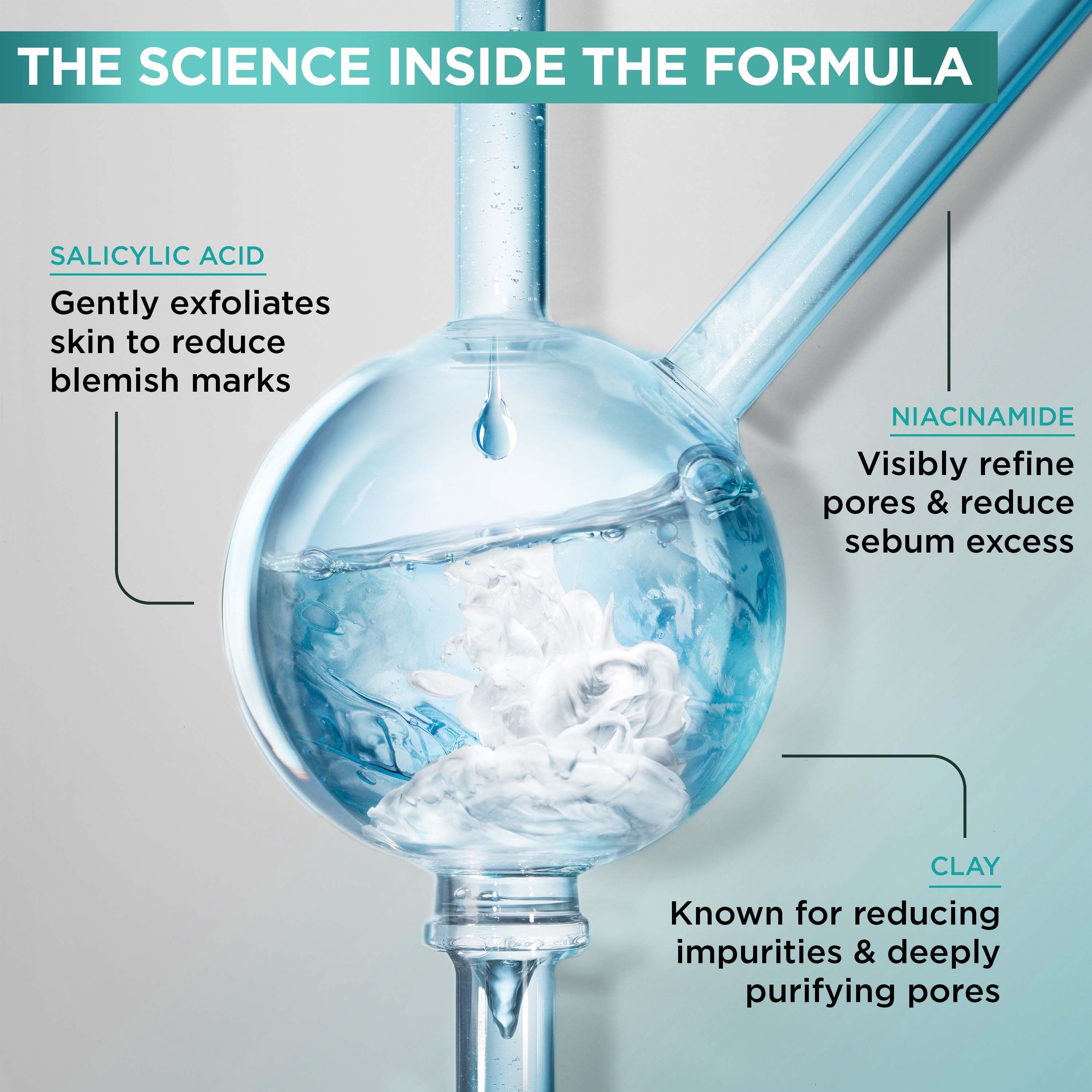 Innowacyjne połączenie właściwości preparatów pielęgnacyjno-oczyszczających pozwoliło uzyskać uniwersalny produkt, który zaspokoi potrzeby wszystkich osób ze skórą problematyczną. Przy regularnym stosowaniu zwęża pory i efektywnie ogranicza wydzielania sebum.