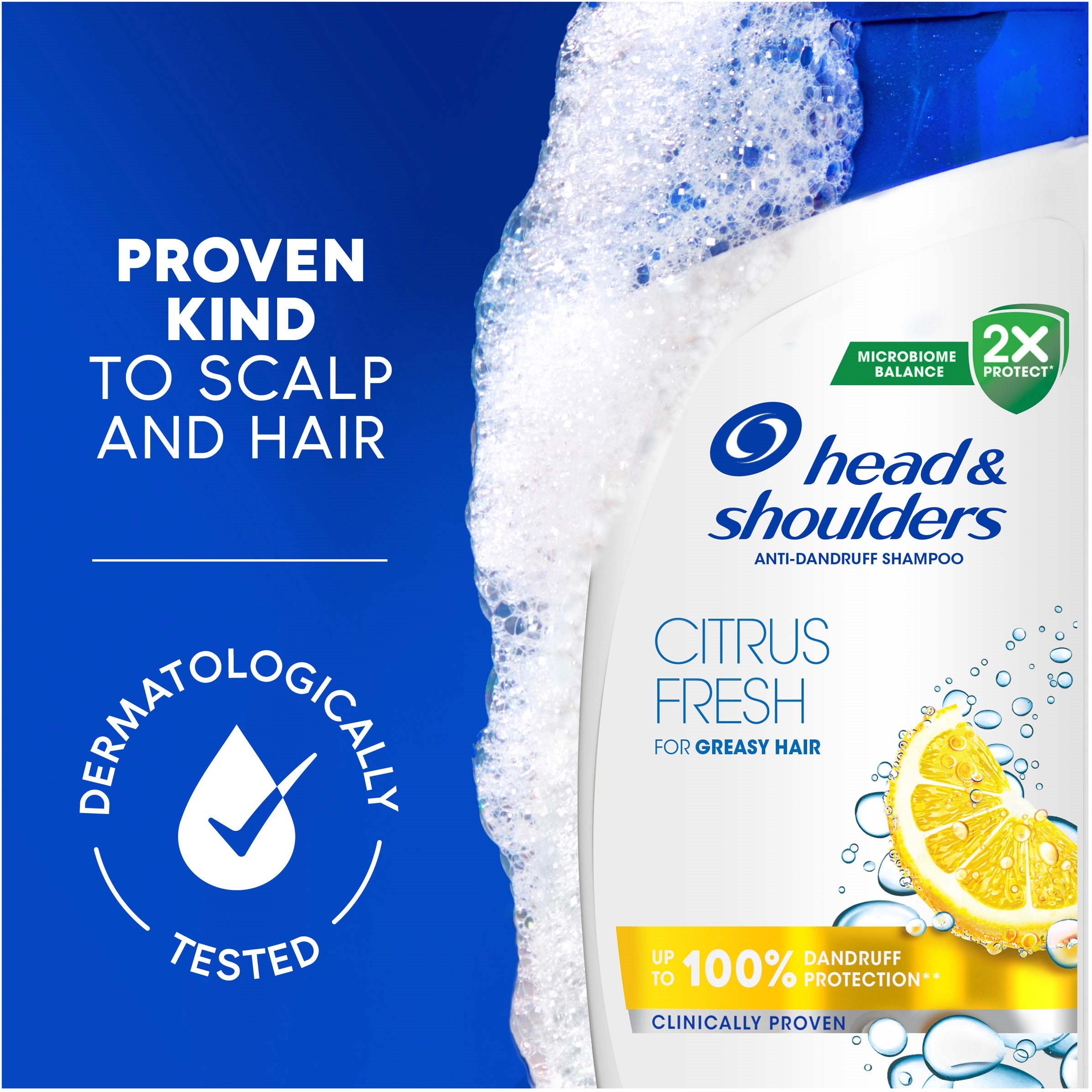 Szampon przeciwłupieżowy Head & Shoulders Citrus Fresh do włosów przetłuszczających się skutecznie zwalcza uporczywy łupież. To szampon do codziennego stosowania, idealny zarówno dla mężczyzn, jak i kobiet, o orzeźwiającym zapachu cytrusów i formule, która równoważy mikrobiom, działając na podstawową przyczynę łupieżu i utrzymując równowagę mikrobiomu w skórze głowy. Działa zarówno na widoczny, jak i niewidoczny łupież, uwalniając dwa razy więcej składników ochronnych, które wnikają w pory, aby ostatecznie zapobiec powrotowi uciążliwego łupieżu. Posiada klinicznie udowodnioną, dermatologicznie przetestowaną i zrównoważoną pod względem pH formułę, która sprawia, że skóra głowy i włosy są czyste i świeże.SKUTECZNA OCHRONA PRZED ŁUPIEŻEM I PREWENCJA. Do 100% ochrony przed łupieżem*, klinicznie udowodnione *widoczne płatki, przy regularnym stosowaniuSTOSUJ CODZIENNIE DLA NAJLEPSZYCH WYNIKÓW Myj włosy po myciu, poprawia to nawilżenie skóry głowy, jednocześnie redukując problemy ze skórą głowy i uwalniając ją oraz włosy od płatkówFORMUŁA RÓWNOWAŻĄCA MIKROBIOM działa na podstawową przyczynę łupieżu, utrzymując odpowiednie pH i równowagę mikrobiomu w skórze głowy DERMATOLOGICZNIE PRZETESTOWANY Idealny szampon na co dzień dla mężczyzn i kobiet, do wszystkich typów włosów i skóry głowyOPAKOWANIE Z RECYKLINGU Całkowicie nadająca się do recyklingu butelka, wykonana w 100% z recyklingowanego plastiku (z wyjątkiem nakrętki, barwników i dodatków)