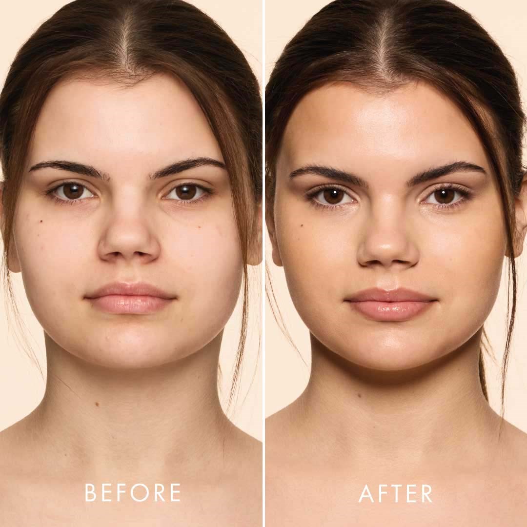 Jedwabiście gładkie serum rozświetlające, które wtapia się w skórę i podkreśla jej naturalny odcień miękkim, satynowym blaskiem. Płynna, lekka formuła tworzy na skórze delikatną, rozświetlającą woalkę i stapia się z nią bez efektu krycia. Odbijające światło mikropigmenty nadają subtelną głębię, a wszystkie trzy odcienie zapewniają to samo wyrafinowane wykończenie typu satin glow.To serum glow łączy blask z pielęgnacją skóry: 4% niacynamidu pomaga zmniejszyć widoczność porów, wyrównać koloryt skóry i wzmocnić barierę ochronną. Kwas hialuronowy o niskiej i wysokiej masie cząsteczkowej wiąże wilgoć i zapewnia długotrwałe nawilżenie. Ferment kombuchy dostarcza antyoksydantów i poprawia strukturę skóry, a prebiotyki wspierają naturalną równowagę mikrobiomu skóry. Efektem jest świeża, gładka i promienna skóra o aksamitnym, satynowym blasku. Sposób użycia: Nałóż kilka kropli na oczyszczoną skórę. Stosuj serum samodzielnie, aby uzyskać naturalny efekt glow, dodaj kilka kropli do podkładu lub użyj jako bazy pod makijaż. Aby uzyskać w pełni skoordynowaną rutynę glow, sięgnij po Pearl, Honey lub Bronze Glow Priming Moisturizer w dopasowanym odcieniu.