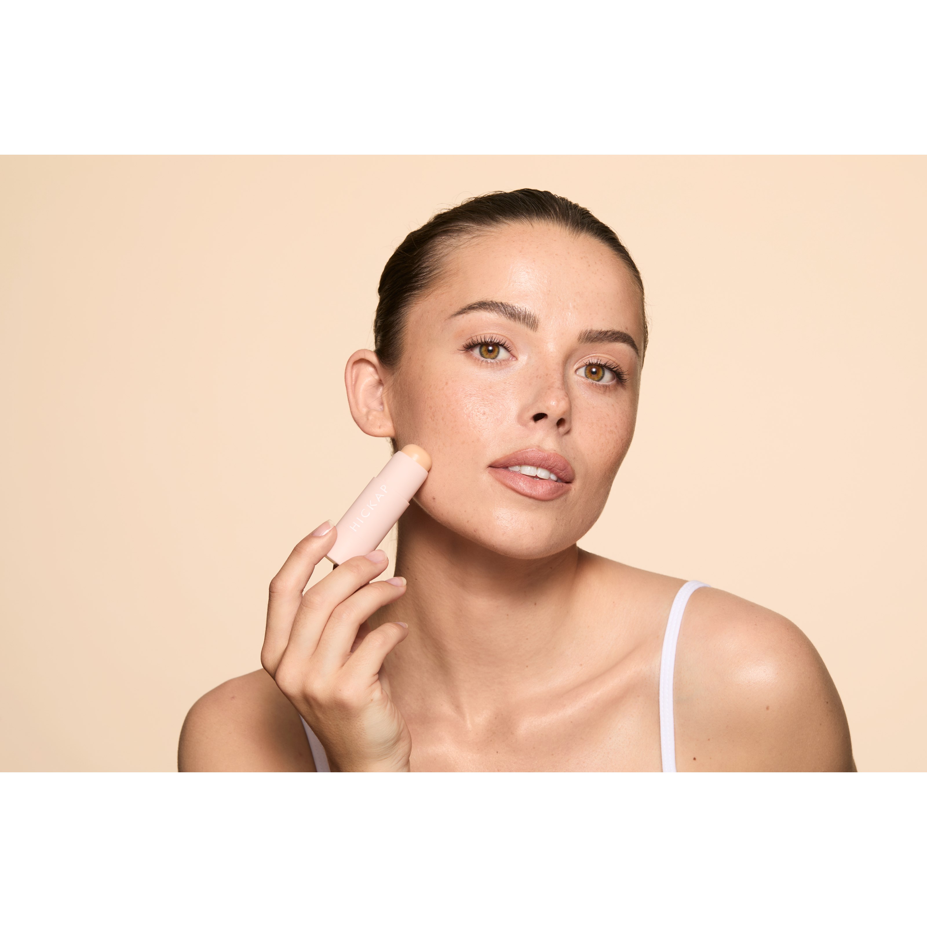 Wonder Base to podkład, jakiego jeszcze nie było. Cudownie kremowy sztyft Hickap uprości i poprawi rutynę makijażu. Poczuj, jak miękka formuła delikatnie rozprowadza się po skórze. Rozprowadź, rozetrzyj i ciesz się długotrwałym i optymalnym średnim kryciem bez żadnych niedoskonałości. Rozbudowująca się tekstura staje się jak druga skóra, która czuje się naturalnie komfortowo i pozwala zabłysnąć naturalnemu blaskowi, dając jednocześnie możliwość zwiększenia krycia, jeśli chcesz. Podkład w sztyfcie jest bardzo delikatny dla wrażliwej skóry i wzbogacony o składniki nawilżające i zmiękczające, takie jak kwas hialuronowy, olej kokosowy, olej morelowy, aloes i ekstrakt z rumianku. Kremowy podkład w sztyfcie jest łatwy w użyciu, idealnie mieści się w torebce i zapewnia świetnie wyglądający efekt. Wonder Base jest również idealny do stosowania jako bronzer, konturówka i korektor. Używając jednej i tej samej formuły do różnych zastosowań, uzyskuje się całkowicie jednolity efekt przy mniejszym ryzyku, że makijaż zacznie się rolować. • Korektor: Aby użyć The Wonder Base jako korektora, wybierz odcień o 1-2 odcienie jaśniejszy od podkładu. • Konturowanie: Aby użyć The Wonder Base do konturowania, wybierz chłodny odcień, który jest o 2 odcienie ciemniejszy od podkładu. • Bronzer: Aby użyć bazy The Wonder Base jako bronzera, wybierz ciepły odcień, który jest o 2 odcienie ciemniejszy od podkładu.Sposób użycia:Formuła łatwo wnika w skórę, dzięki czemu można ją nakładać palcami lub dowolnym narzędziem. Po nawilżeniu – omieć sztyft bezpośrednio na skórę lub użyj kompaktowego pędzla lub gąbki do makijażu. Niezależnie od metody, za każdym razem uzyskasz równomierne i perfekcyjne wykończenie.Aby uzyskać naturalny i mniej kryjący efekt, namocz gąbkę do makijażu w wodzie i wyciśnij nadmiar wody. Nałóż sztyft bezpośrednio na skórę i rozetrzyj za pomocą wilgotnej gąbki. Aby uzyskać bardziej kryjący efekt – użyj jednego z naszych pędzli do makijażu lub suchej gąbki do makijażu. Nałóż sztyft bezpośrednio na skórę i rozetrzyj za pomocą dowolnego narzędzia LUB nabierz formułę ze sztyftu za pomocą narzędzia i nałóż na skórę.8 g