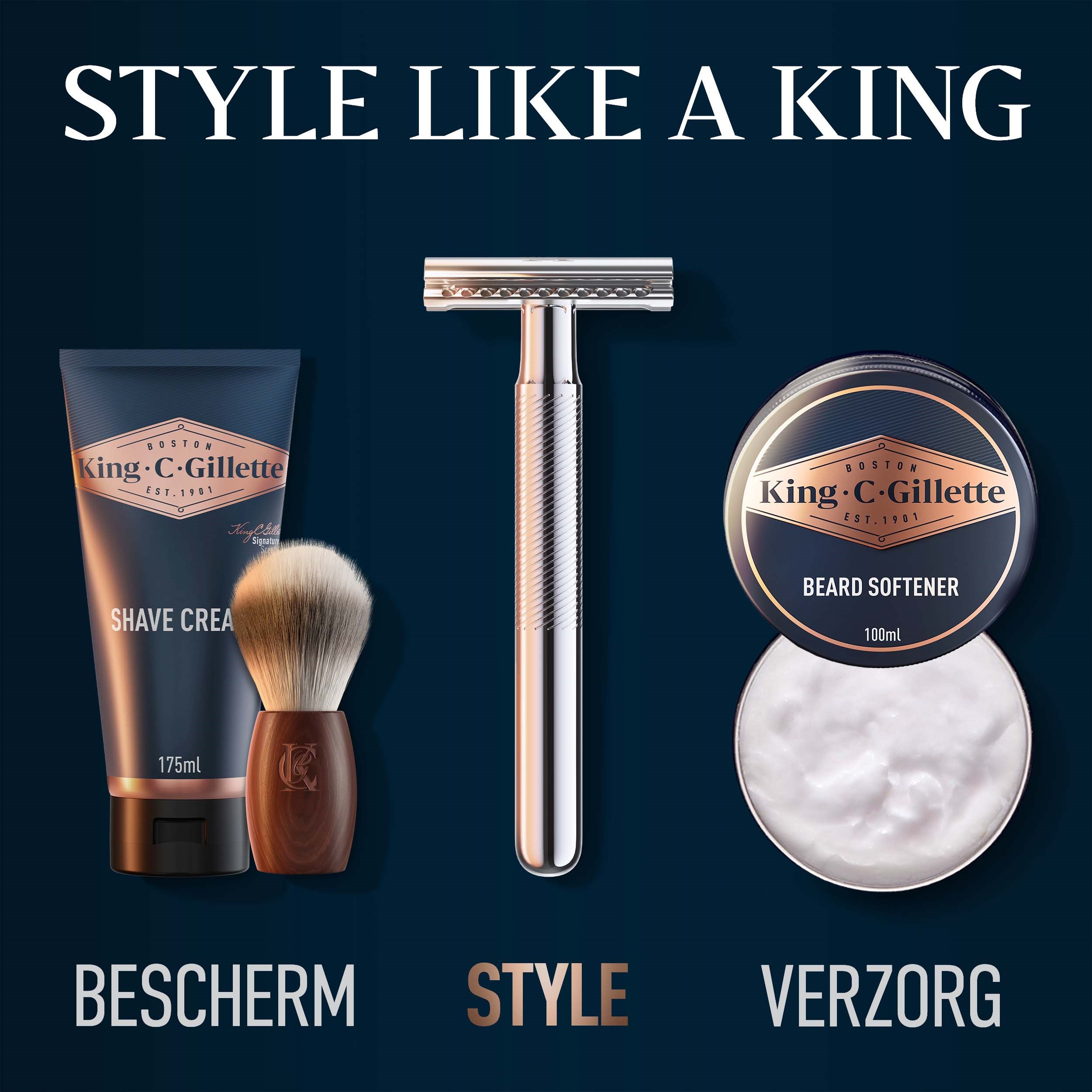 Efekt ponad stu lat innowacji i doświadczenia, a także jedyna seria, która nosi imię założyciela marki Gillette: King C. Gillette. Maszynka do golenia ma kultowy design inspirowany historią Gillette, stworzony, by uzyskać krawędzie o optymalnej precyzji. Jedno platynowe, podwójne ostrze formuje z niesamowitą dokładnością, idealne do stylizacji konturów wąsów i ostrych linii zarostu. Zamknięta konstrukcja grzebienia Gillette zapewnia doskonałą kontrolę, a wysokiej jakości chromowany uchwyt gwarantuje długotrwałą trwałość.