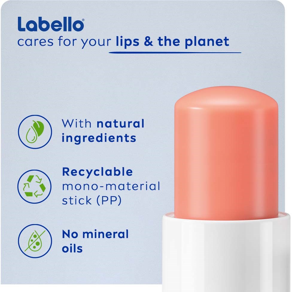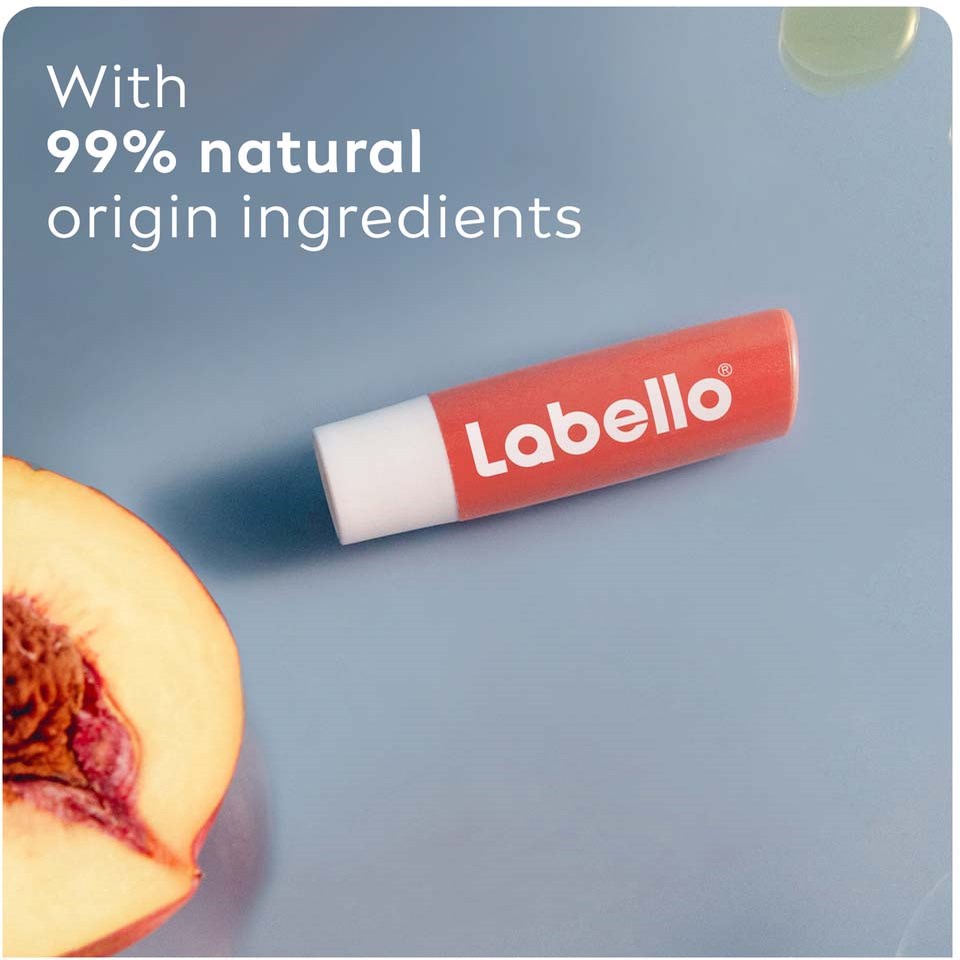 -Balsam do ust z etycznie pozyskiwanym masłem shea-Zapach brzoskwini i koralowy blask dla pięknych ust-Z naturalnymi olejami wzbogaconymi witaminami-Nawilża usta przez 24 godziny-Nowa, ulepszona i bardziej efektywna formuła-Formuła wegańska – wolna od składników pochodzenia zwierzęcegoSMAK + NAWILŻENIE + ODROBINA KOLORU w produkcie do ust? TAK, z Labello® Peach Shine Lip Balm! Balsam do ust ma delikatny zapach świeżej brzoskwini i nadaje ustom subtelny koralowy blask. Dodatkowo utrzymuje usta nawilżone przez 24h oraz chroni przed zimnem, wiatrem i suchym powietrzem. Klinicznie testowany. Nowa, ulepszona formuła jest wzbogacona o naturalne składniki i etycznie pozyskiwane masło shea. Balsam do ust zawiera również naturalne oleje i witaminy. Unikalna formuła ma przyjemną konsystencję, która natychmiast topnieje na ustach i utrzymuje je nawilżone. Balsam wspiera barierę skórną ust przed czynnikami zewnętrznymi oraz chroni je przed wysuszeniem. Formuła wegańska – wolna od składników pochodzenia zwierzęcego. Dermatologicznie testowany i odpowiedni dla wszystkich typów skóry. Ciesz się pięknymi, miękkimi i świeżymi ustami przez cały dzień, każdego dnia!