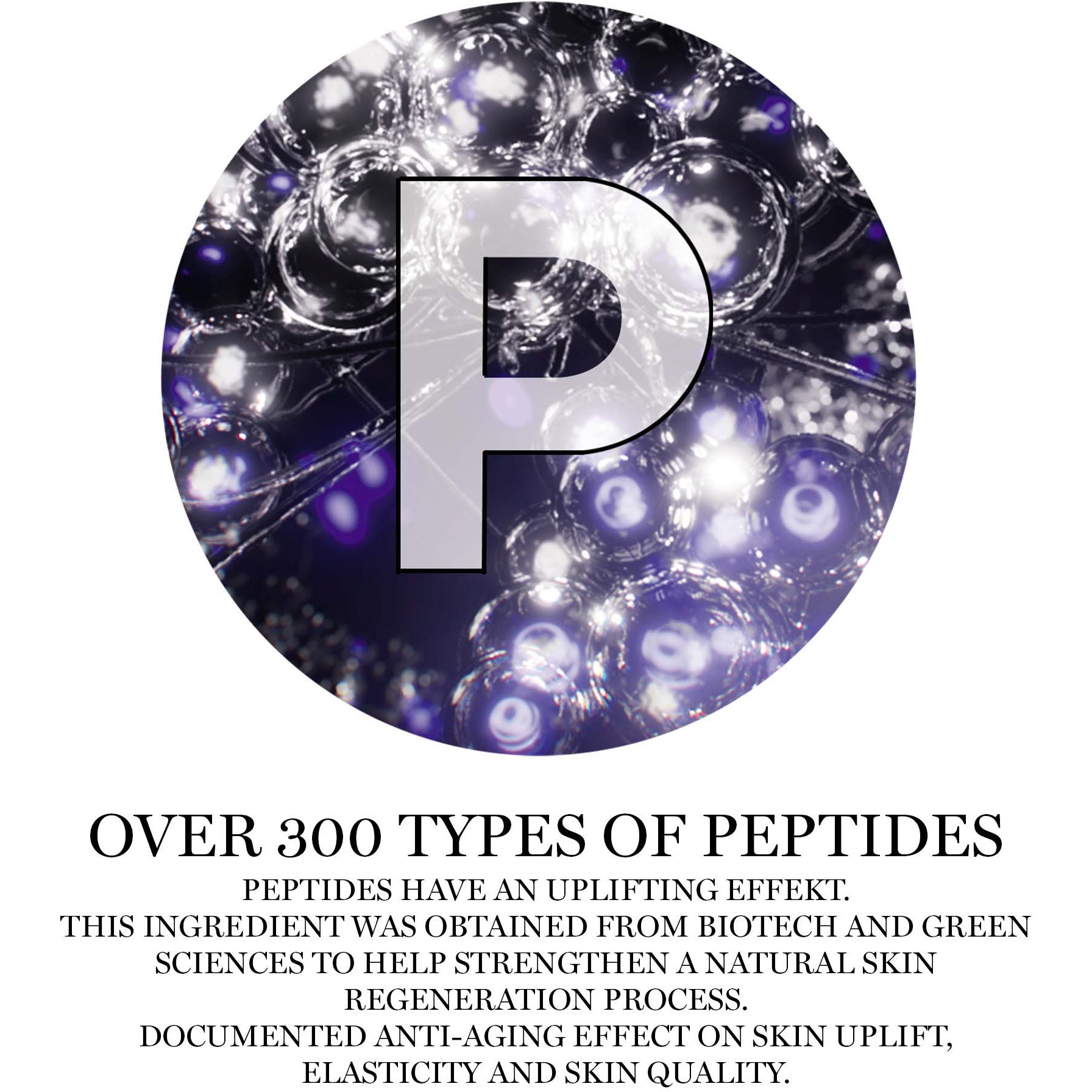 300 PEPTYDÓW- Ujędrnianie i napinanie- Badane w ramach nauk regeneracyjnych w celu wzmocnienia naturalnej regeneracji- Udokumentowane działanie przeciwstarzeniowe na jędrność, elastyczność i jakość skóry