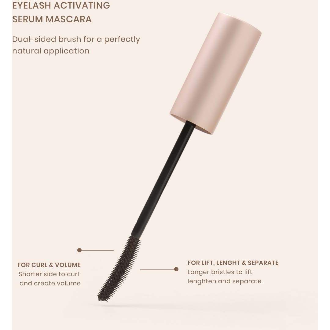 Lenoites® Eyelash Activating Serum Mascara zawiera 83% serum do rzęs, które sprawia, że rzęsy wyglądają dłużej, gęściej i bardziej pełniej. Szczoteczka została zaprojektowana w taki sposób, aby chwycić, unieść i zakręcić każdą rzęsę, zapewniając natychmiastowy efekt objętości bez grudek. Szczoteczka dosięga nawet najmniejszych rzęs. Zawiera naturalne składniki, w tym biotynę, pantenol i peptydy. Mascara jest odporna na wodę, pot i łzy. Łatwo można ją usunąć ciepłą wodą o temperaturze 38°C lub wyższej.Sposób użycia: