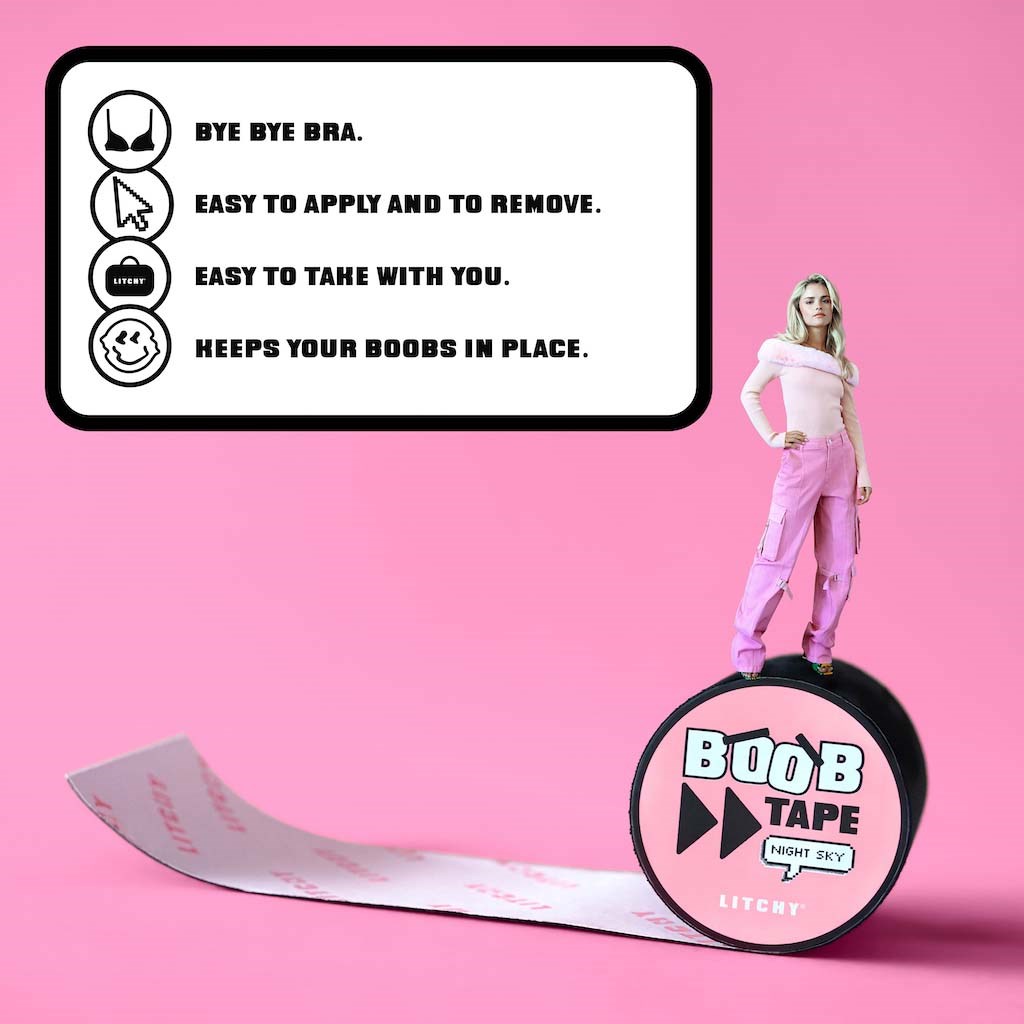 Chcesz dodać sobie pewności siebie w każdej stylówce? Wypróbuj miękką i elastyczną LITCHY Boob Tape. Ta taśma do biustu to must-have, który unosi, spłaszcza lub dodaje wsparcia. LITCHY Boob Tape trzyma się na miejscu przez cały dzień, towarzysząc Ci w niezapomnianych chwilach. Dla najlepszego efektu połącz ją z LITCHY Nipple Covers.• 7,5 cm szer. i 5 m dł.• Certyfikowany klej• Wodoodporna• Zapewnia efekt push-up• Dostępna w różnych odcieniach• Przepuszcza powietrzeSposób użycia:1. Przed użyciem nałóż testowy kawałek taśmy na skórę piersi, dekoltu lub łokcia i pozostaw na 9 godz., aby sprawdzić, czy nie wystąpi reakcja. Jeśli poczujesz pieczenie lub swędzenie podczas testu, nie używaj taśmy.2. Jeśli test przebiegł pomyślnie i planujesz użyć taśmy, upewnij się, że skóra jest czysta i bez olejków oraz kremów.3. Wybierz rodzaj topu, który planujesz założyć, i postępuj zgodnie z instrukcjami, aby nałożyć taśmę.4. Odetnij tyle taśmy, ile potrzebujesz. Taśma jest bardzo elastyczna, więc nie musisz używać zbyt długich kawałków.5. Odklej kilka centymetrów białej osłony z taśmy. Uważaj, aby nie usunąć całej osłony, ponieważ taśma może przykleić się do siebie.6. Dociśnij i unieś piersi do pożądanej pozycji rękami.7. Nałóż taśmę od zewnątrz do wewnątrz.8. Przyłóż klejącą stronę do skóry i stopniowo usuwaj papier, aby zabezpieczyć piersi na miejscu.9. Zalecamy noszenie taśmy maks. 9 godz. Gotowa na podbój nocy!