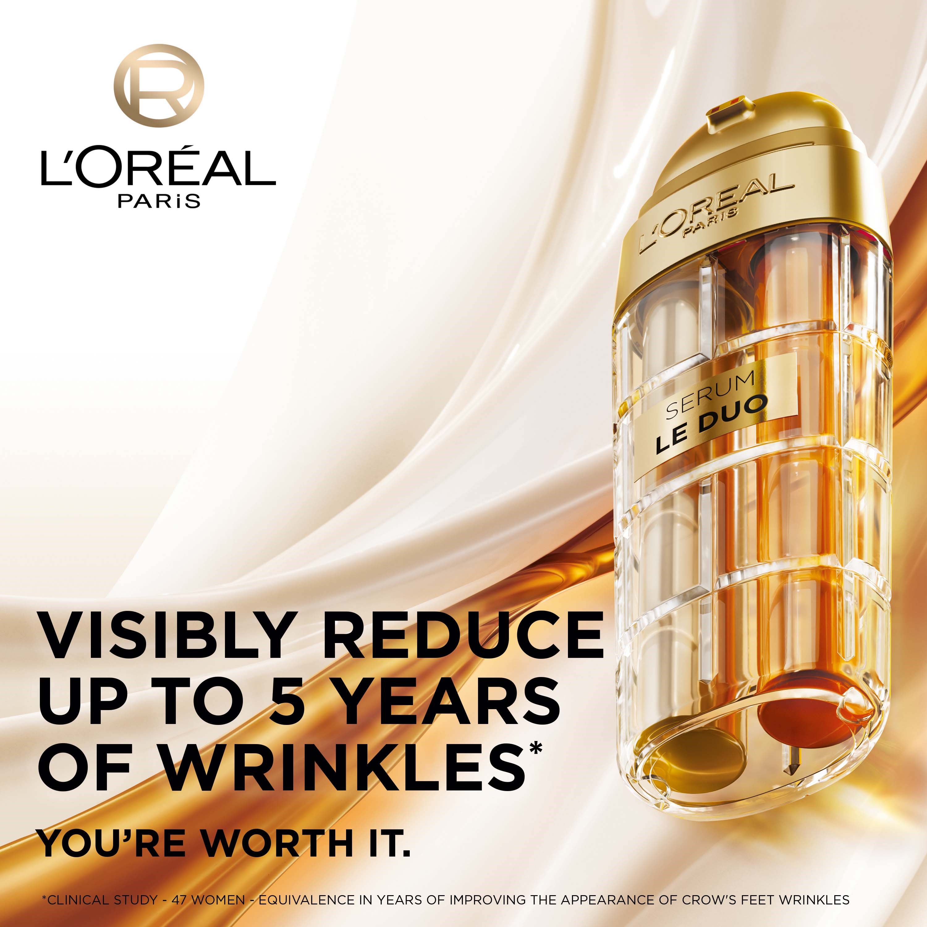 L'Oréal Paris Age Perfect Le Duo Age Defying Serum For Normal Skin 30 ml to serum przeciwstarzeniowe odpowiednie dla wszystkich rodzajów skóry, w tym wrażliwej. L'Oréal Paris po raz pierwszy połączył skuteczność dwóch serum w jednym, aby zredukować oznaki starzenia. Formuły są oddzielone w dwóch komorach, aby zachować maksymalną świeżość. Aksamitna, biała formuła z frakcjami peptydów kolagenu ujędrnia skórę, a karmelowa z witaminami C i B3 dodaje blasku i wyrównuje koloryt. Podwójna pompka zapewnia świeżą mieszankę składników aktywnych przy każdej aplikacji. Efekt? Zredukowane oznaki starzenia w 7 dni** i skuteczność dwóch serum w jednym.Natychmiastowy efekt: Skóra jest gładsza i intensywnie odżywiona. Po 7 dniach: Skóra wygląda na wyraźnie młodszą**, jest bardziej promienna, a kontury twarzy są lepiej zdefiniowane. Oznaki starzenia zredukowane. Po 4 tygodniach: Skóra jest jędrniejsza, bardziej jednolita, a zmarszczki mniej widoczne. Odpowiedni dla wszystkich rodzajów skóry, w tym wrażliwej.- Odpowiedni dla wszystkich rodzajów skóry, w tym wrażliwej- Natychmiastowy efekt ujędrnienia i blasku- Zmniejsza widoczność zmarszczek- Przyjemna konsystencja bez efektu tłustości- Przetestowany pod kontrolą dermatologiczną* Pochodna witaminy C**Test kosmetokliniczny, 47 kobiet, pomiar zmarszczek mimicznych wokół oczuSposób użycia:Nałóż na oczyszczoną twarz i szyję, wmasuj ku górze przed nałożeniem kremu do twarzy.