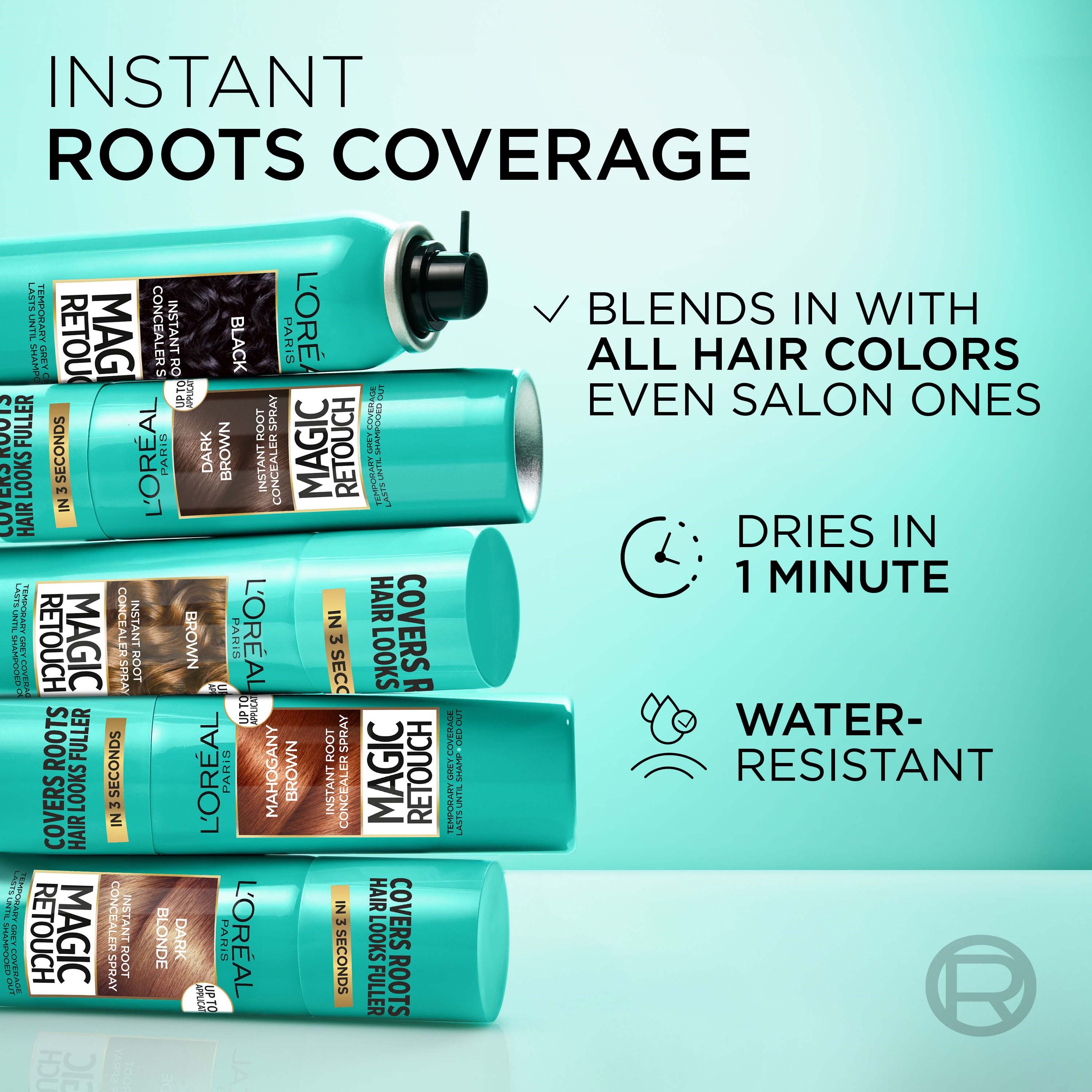 Retusz Odrostów w Sprayu L'Oreal Paris Magic Retouch stworzony dla natychmiastowego efektu retuszu włosów farbowanych: