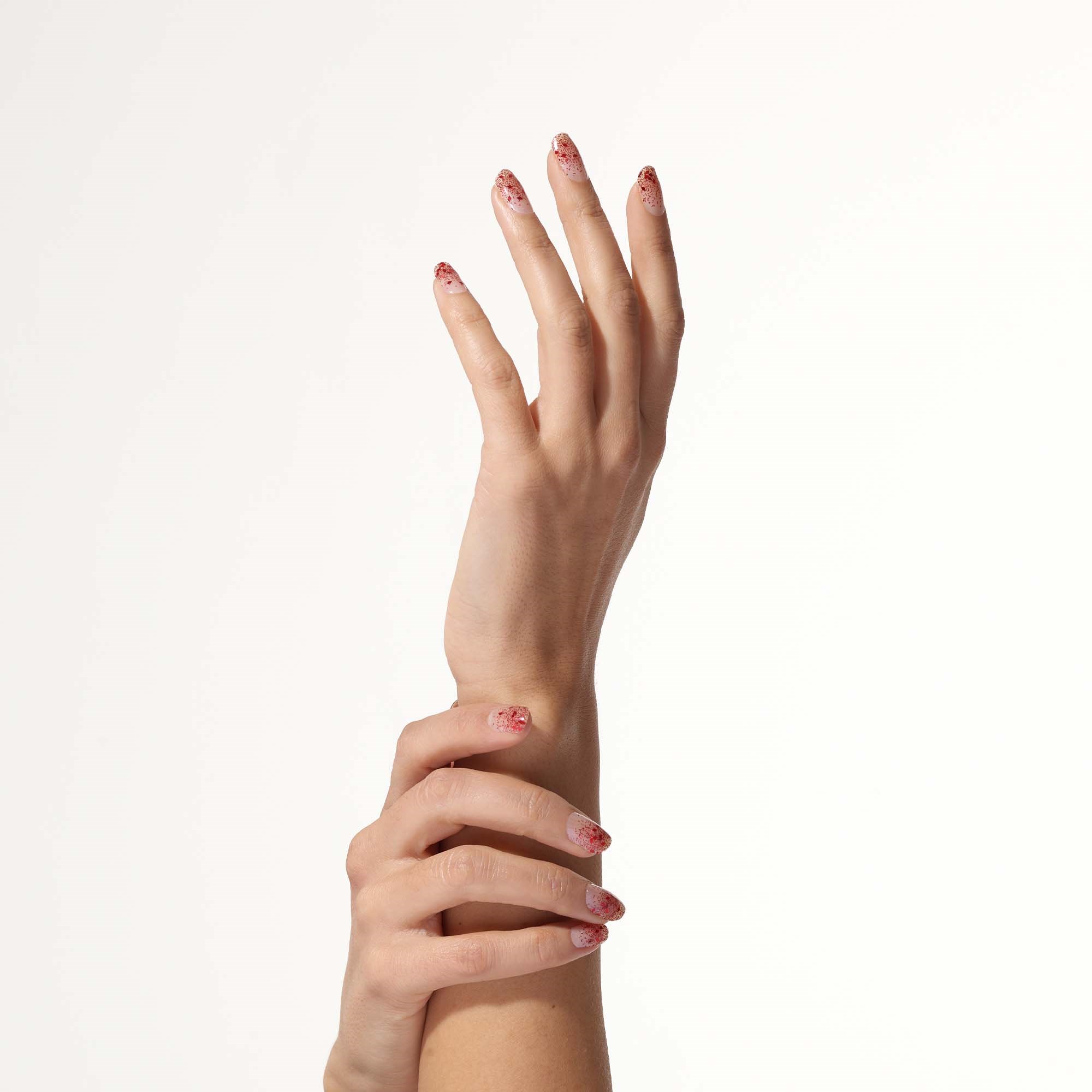 Czas zaszaleć razem z przezroczystymi żelowymi naklejkami na paznokcie z motywem czerwonego brokatu, które idealnie sprawdzą się zarówno na imprezę, jak i na co dzień!