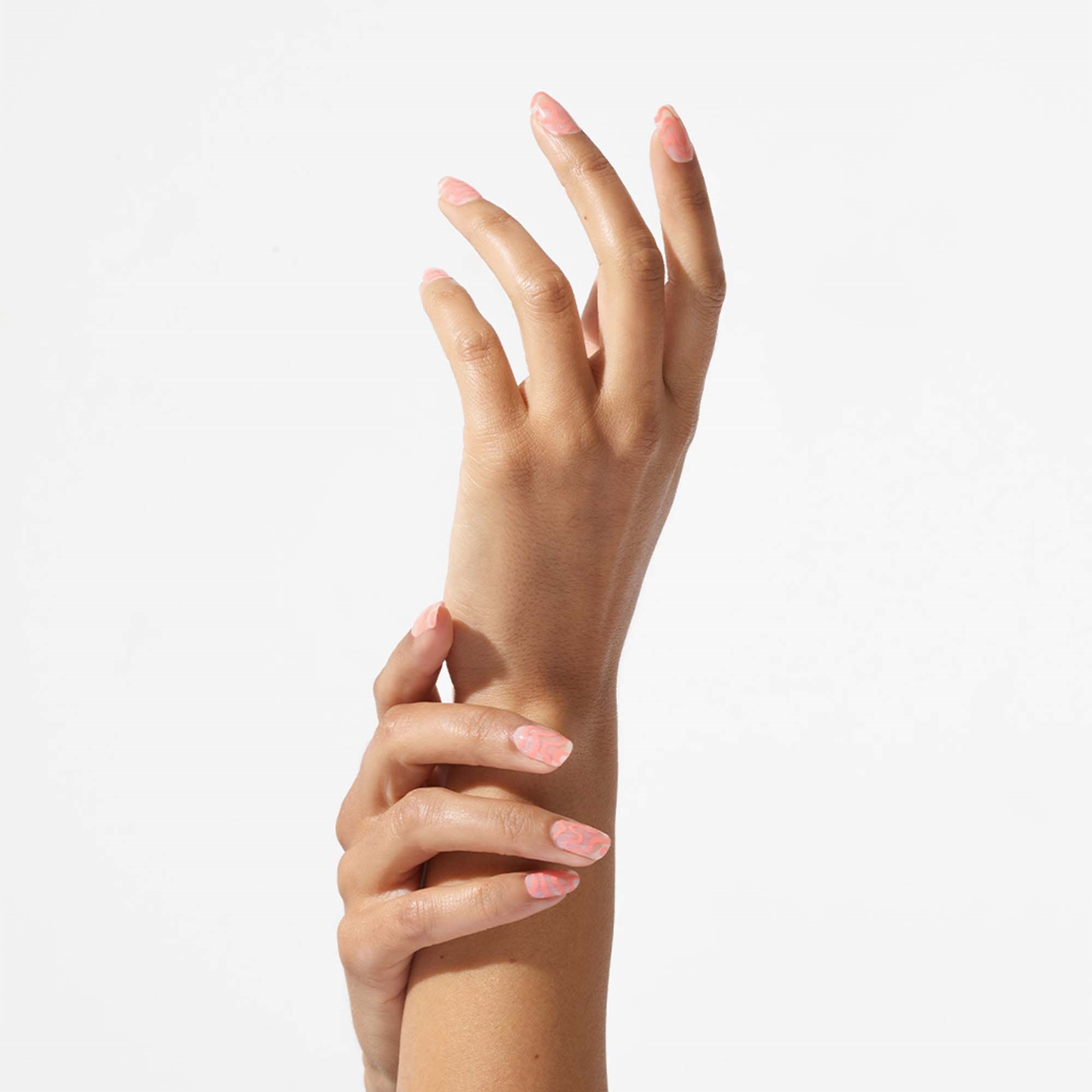 Zafunduj sobie nie lada przyjemność! Innowacyjne hybrydy w naklejce w kolorze Pale Coral rozpieszczą Twoje paznokcie i nadadzą im pełne blasku wykończenie!
