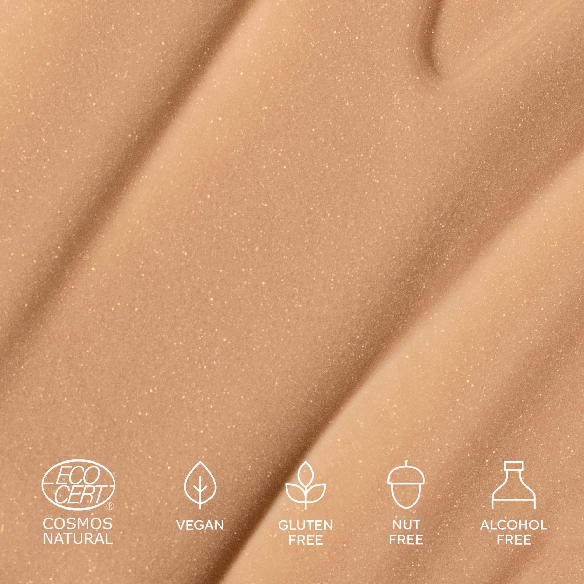 Ultralekkie, certyfikowane organiczne serum z delikatnym kolorem sprawia, że skóra promienieje naturalnym blaskiem. Intensywnie nawilżająca formuła z kwasem hialuronowym i ekstraktem z czerwonych alg pielęgnuje skórę przez cały dzień, nie obciążając jej. Mineralne pigmenty i drobno zmielone błyszczące drobinki sprawiają, że serum wtapia się w skórę, zapewniając niewidoczne krycie i słoneczny blask.Sposób użycia:Nałóż cienką warstwę na dowolny krem nawilżający.