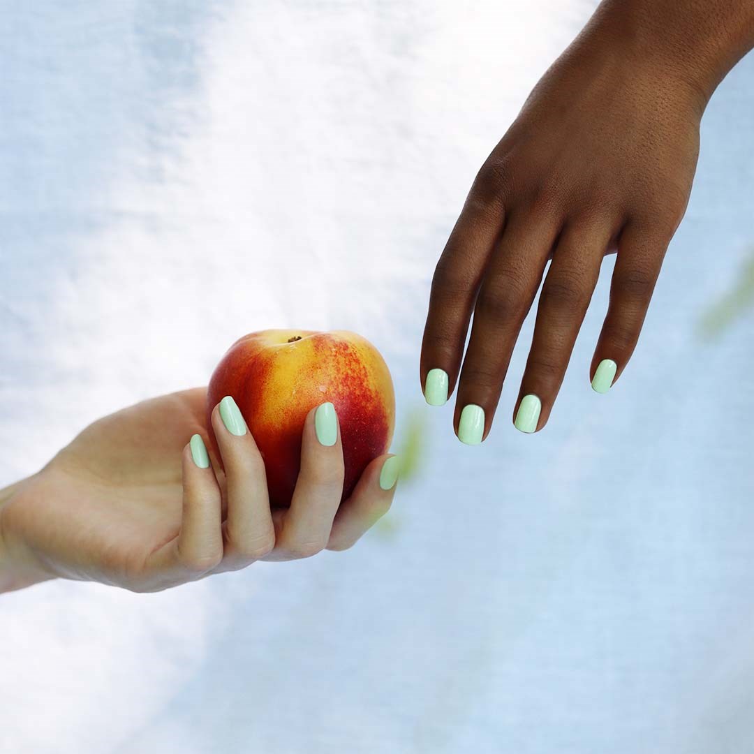 Nanieś jedną warstwę Green Top Coat, zabezpiecz brzeg paznokcia i pozostaw do wyschnięcia.