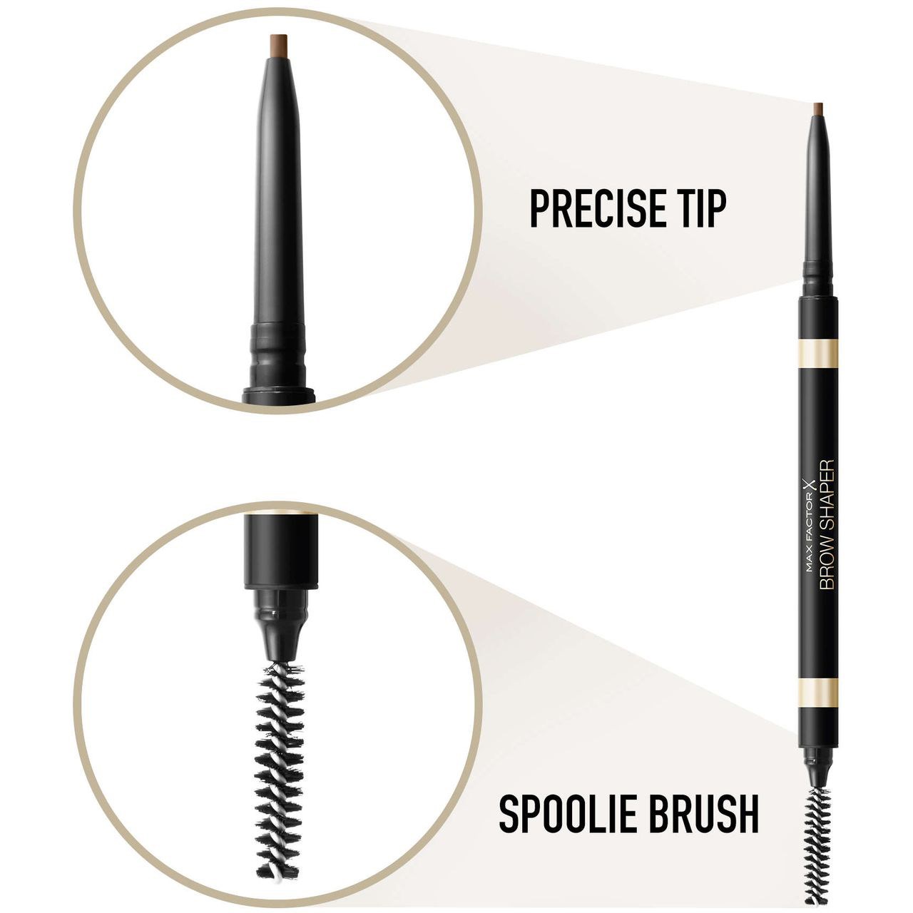 Brow Shaper to kredka do brwi z dwoma różnymi końcówkami, która oferuje uzyskanie perfekcyjnej równowagi w zbudowaniu koloru oraz nadaniu wymarzonego kształtu. Ultra cienka, ścięta końcówka kredki pozwala na precyzyjną aplikację, dzięki czemu nadawanie kształtu brwiom jest bardzo łatwe. Natomiast końcówka ze szczoteczką świetnie sprawdza się w wykończeniu makijażu i zdjęciu nadmiaru koloru, dzięki czemu brwi wyglądają bardzo naturalnie. Kredka dostępna jest w trzech matowych odcieniach. Każdy z nich zapewnia gładkie i równe wykończenie.