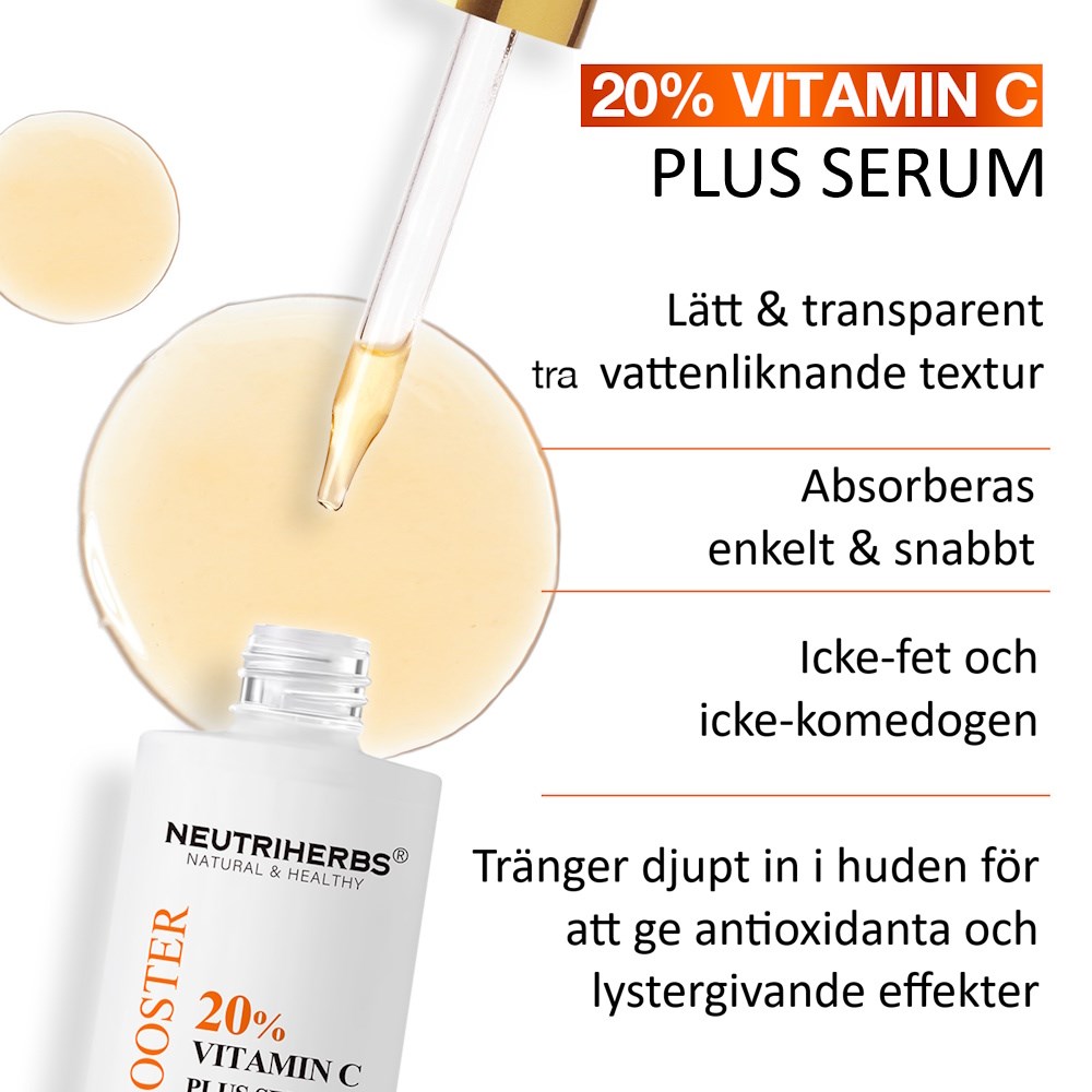 Chcesz mieć jaśniejszą, gładszą i młodszą skórę? Wypróbuj Neutriherbs Vitamin C Plus 20% Brightening Serum!To mocne serum z 20% stabilizowanej witaminy C aktywnie rozświetla skórę, wyrównuje koloryt i zmniejsza widoczność ciemnych plam. Lekka formuła sprawia, że to idealny produkt do codziennego użytku dla tych, którzy marzą o jaśniejszej, gładszej i bardziej promiennej cerze.Daj skórze zastrzyk energii z naszym najbardziej skoncentrowanym serum z witaminą C – dla świeższej, gładszej i bardziej pełnej życia cery każdego dnia!Działanie:20% witaminy C zmniejsza przebarwienia i dodaje skórze naturalnego blaskuStymuluje produkcję kolagenu, ujędrnia skórę i redukuje drobne linieChroni przed wolnymi rodnikami i opóźnia procesy starzeniaRoślinne ekstrakty koją i wzmacniają barierę ochronną skóryLekka formuła odpowiednia dla wszystkich rodzajów skóryProdukt wegańskiDla tych, którzy zmagają się z:✔ Zmęczoną i poszarzałą skórą✔ Nierównym kolorytem lub przebarwieniami✔ Pierwszymi oznakami starzenia✔ Suchością i brakiem blaskuKluczowe składniki:3-O-Ethyl Ascorbic Acid (20% witaminy C): Stabilny i silny antyoksydant, który rozjaśnia skórę i stymuluje produkcję kolagenu.Ekstrakt z kory amurskiej: Działa kojąco i przeciwzapalnie.Ekstrakt ze słodu: Bogaty w aminokwasy i antyoksydanty, nawilża i chroni skórę.Etyloheksylogliceryna: Naturalnie nawilża i ma właściwości antybakteryjne.Sposób użycia:Tak używaj serum:Oczyść twarz i osusz.Nałóż tonik według uznania.Nałóż cienką warstwę serum równomiernie na skórę.Pozwól wyschnąć, a następnie nałóż ulubiony krem.Dla najlepszych efektów używaj z innymi produktami z serii Neutriherbs Vitamin C.