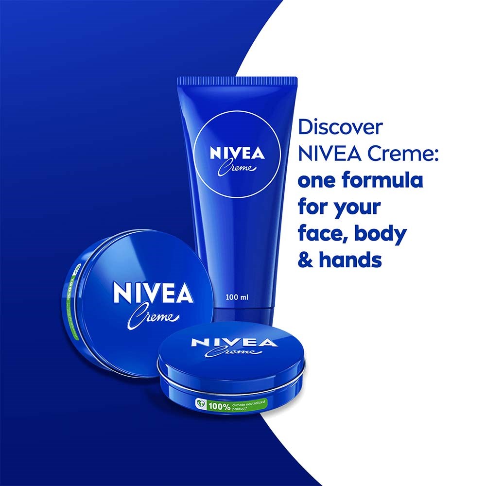 – Intensywna pielęgnacja – Nawilża nawet bardzo suche miejsca- Krem nawilżający- Idealny do codziennego użytku- Przebadany dermatologicznie- Krem nawilżający odpowiedni dla wszystkich typów skóryKrem NIVEA Creme w tubie to kultowy krem NIVEA, teraz w formie tuby, idealny dla całej rodziny i do stosowania na całe ciało! Zapewnia skórze kompleksową ochronę, której potrzebuje, aby pozostać miękka i elastyczna. Krem nawilżający doskonale sprawdza się w codziennej pielęgnacji, gdy Twoja skóra potrzebuje troski. Ta intensywnie pielęgnująca formuła nawilża skórę i zmiękcza nawet bardzo suche obszary ciała, dlatego świetnie nadaje się do stosowania na łokcie, kolana, dłonie i twarz. Krem NIVEA Creme w tubie jest przebadany dermatologicznie i odpowiedni dla wszystkich typów skóry oraz dla osób w każdym wieku – zarówno dorosłych, jak i dzieci. Wypróbuj nasz krem NIVEA Creme w tubie – podziel się nim z całą rodziną i ciesz się gładką i miękką skórą!Sposób użycia:1. Nałóż na twarz, ciało lub dłonie i wmasuj2. Pozwól, aby krem wchłonął się w skórę3. Ponownie nałóż na szczególnie suche miejsca