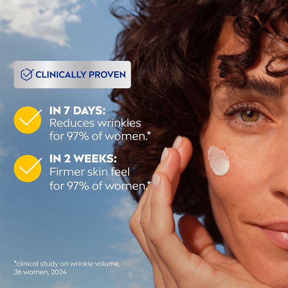 -Jędrniejsza skóra w 7 dni-2x kolagenowy booster i kwas hialuronowy-Intensywnie nawilżona skóra-Regenerujący krem na noc-Redukuje i przeciwdziała zmarszczkom-Miękka i zdrowa skóraNIVEA Q10 Power Replenishing Night Cream to nocny krem o bogatej konsystencji, który intensywnie pielęgnuje i nawilża skórę, zapewniając natychmiastowe uczucie gładkości. Krem zawiera podwójny kolagenowy booster z czystym Q10 i kreatyną oraz kwas hialuronowy. Q10 wspiera siłę komórek skóry i kolagen, a także redukuje zmarszczki od wewnątrz (testowane na komórkach skóry). Kreatyna znana jest z tego, że natychmiastowo wzmacnia komórki skóry i daje dodatkowego kopa w produkcji kolagenu i elastyny (testowane na komórkach skóry). Kwas hialuronowy wypełnia i zatrzymuje wilgoć w skórze. Odkryj ten krem na noc NIVEA z klinicznie udowodnionymi rezultatami: redukcja zmarszczek u 86% kobiet w 7 dni oraz jędrniejsza skóra u 76% kobiet w 7 dni (samoocena, 42 kobiety, 2021). Dodatkowo, intensywne nawilżenie skóry u 90% kobiet w 2 tygodnie i regeneracja skóry u 73% kobiet w 4 tygodnie (badania naukowe dotyczące nawilżenia/regeneracji skóry, 30 kobiet, 2021). Ten krem na noc jest dermatologicznie testowany i odpowiedni dla wszystkich typów skóry.Tekst ostrzegawczy: Unikaj kontaktu z oczamiSposób użycia:1. Aplikuj codziennie na oczyszczoną twarz2. Unikaj kontaktu z oczami3. Dla najlepszych rezultatów używaj całej serii NIVEA Q10 Power