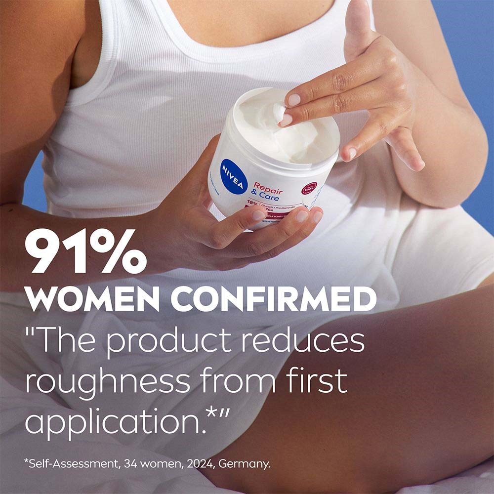 – Odżywia skórę- Naprawia widoczne oznaki suchości- Krem z gliceryną i mocznikiem- Do twarzy, ciała i rąk- Zapobiega utracie wilgociMasz dość ekstremalnie suchej i szorstkiej skóry, która potrzebuje dodatkowej troski? Mamy rozwiązanie: NIVEA Repair & Care Body Cream UREA. Ten krem do ciała z 15% gliceryny i mocznikiem intensywnie nawilża i odżywia skórę. Naprawia widoczne oznaki suchości, sprawiając, że skóra staje się miękka i gładka już po pierwszym użyciu. Mocznik to skuteczny składnik, który nie tylko nawilża, ale także zapobiega utracie wilgoci, zapewniając długotrwałe nawilżenie do 72 godzin. Ten uniwersalny krem można stosować do ciała, rąk i twarzy. Przetestowany dermatologicznie, jest delikatny dla skóry. Podaruj swojej skórze miłość i pielęgnację, na jaką zasługuje z NIVEA Repair & Care Body Cream UREA.Uwaga: Unikaj kontaktu z oczami. Sposób użycia: 1. Stosuj codziennie na twarz, ciało i ręce