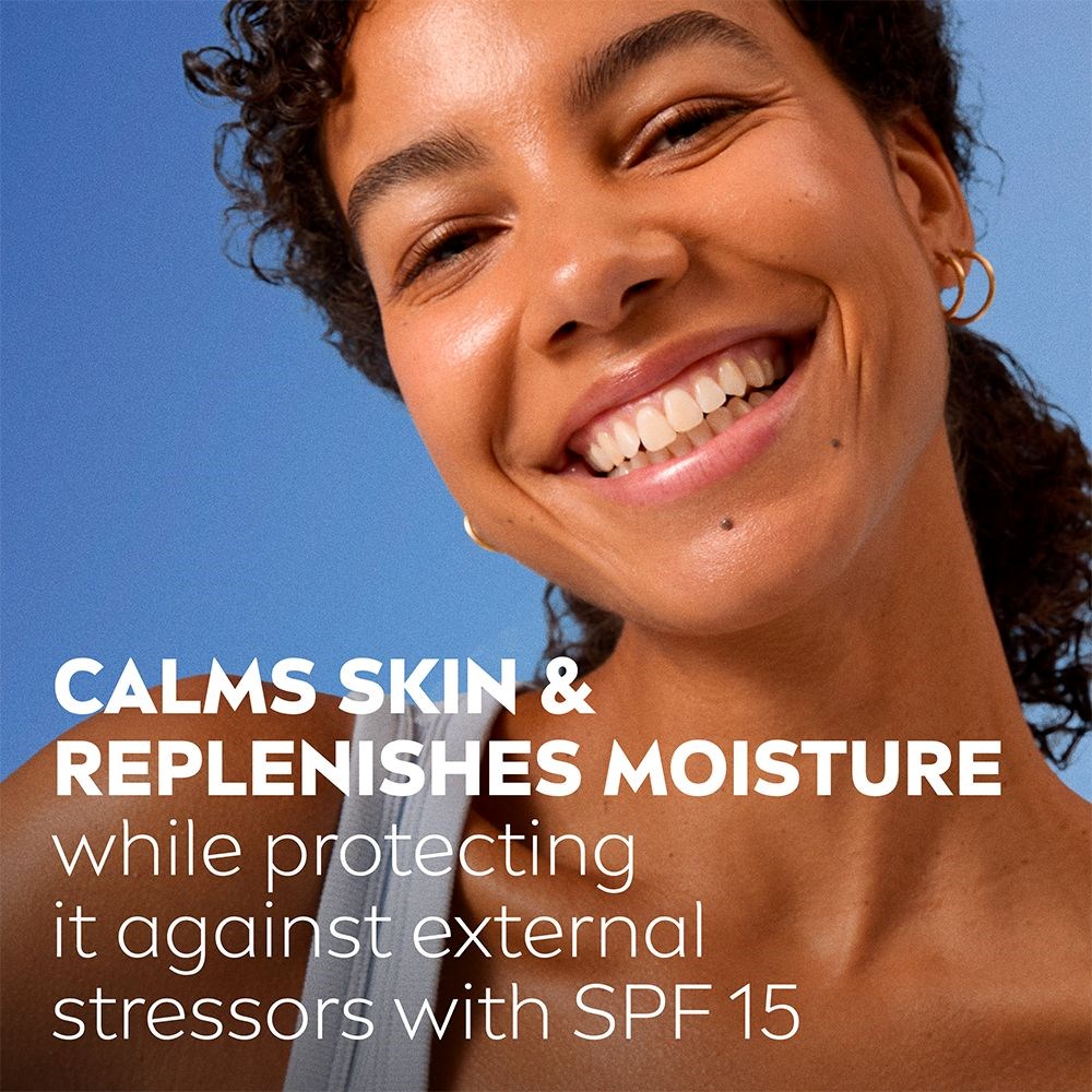 – Krem do twarzy, który nawilża do 24 h- Wzmacnia naturalną odporność skóry na podrażnienia- Wegańska formuła- Redukuje zaczerwienienia, suchość i uczucie ściągnięcia- SPF 15 chroni przed szkodliwym działaniem promieni słonecznych- BezzapachowyPożegnaj suchą skórę i przywitaj glow, które trwa cały dzień z NIVEA Soothing Day Cream. Ten nawilżający krem do twarzy z SPF 15 chroni skórę przed słońcem, a wegańska formuła bez składników pochodzenia zwierzęcego sprawia, że skóra staje się jedwabiście gładka. Krem redukuje zaczerwienienia, suchość, uczucie ściągnięcia i podrażnienia. Nawilża skórę do 24 godzin i przywraca jej naturalny poziom nawilżenia. Krem do twarzy dodatkowo wzmacnia naturalną odporność skóry na podrażnienia. Włącz NIVEA Soothing Day Cream do codziennej rutyny i ciesz się zdrową, nawilżoną skórą! Dla najlepszych efektów używaj całej serii NIVEA do wrażliwej skóry, np. naszego kremu na noc w tubie NIVEA Soothing Night Cream.Uwaga: Unikaj bezpośredniego kontaktu z oczami Sposób użycia: 1. Nałóż na oczyszczoną twarz, delikatnie masując okrężnymi ruchami2. Unikaj kontaktu z oczami3. Dla najlepszych efektów używaj całej serii NIVEA do wrażliwej skóry