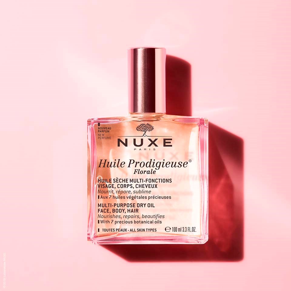 Kultowy kosmetyk NUXE zawierający 7 drogocennych, w 100% roślinnych olejków w nowej wersji o delikatnym, kwiatowym zapachu.