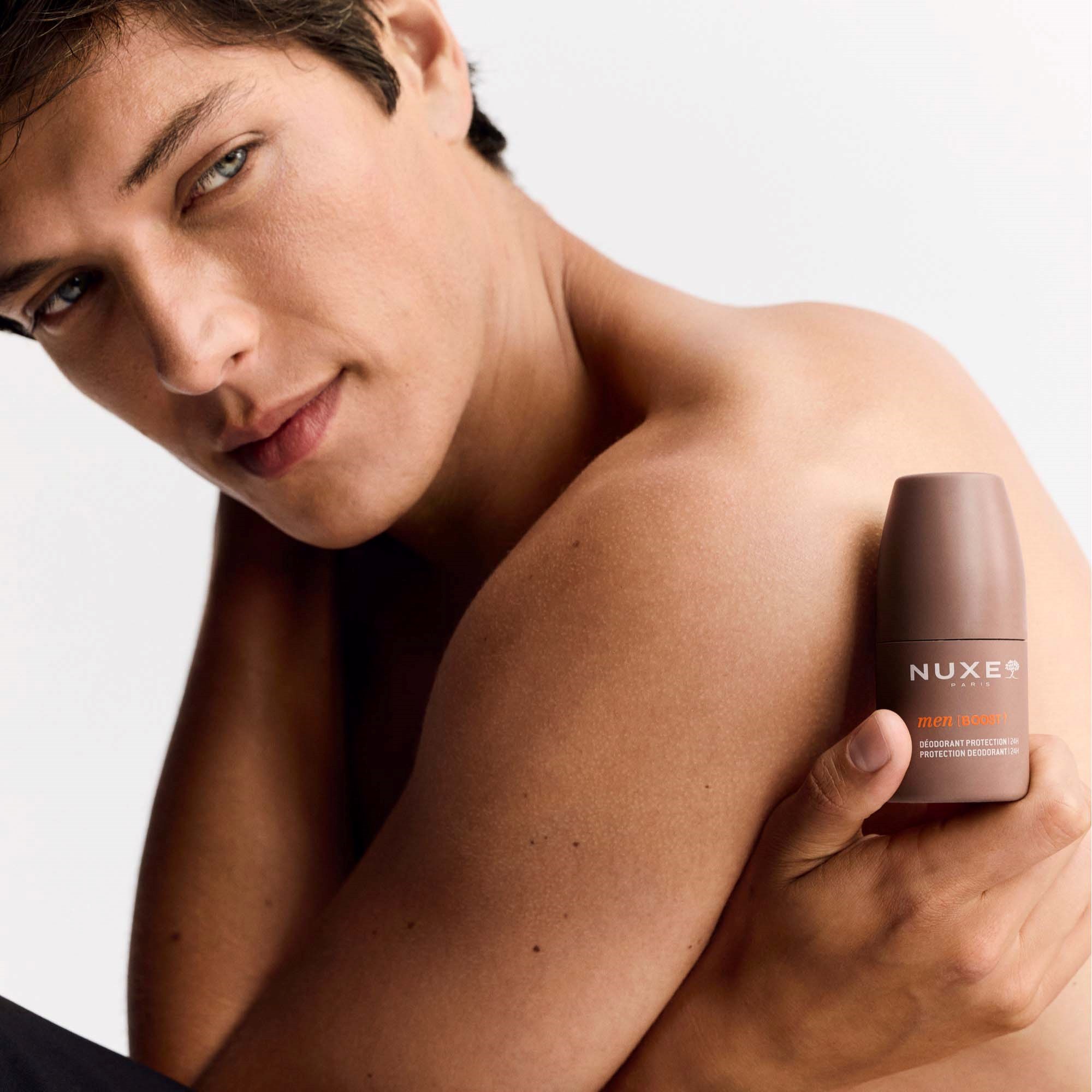 NUXE Men [BOOST]³ to ekspertowa seria, która łączy skuteczność i przyjemność dla zmysłów, by wydobyć pełnię mocy skóry. Nawilża, dodaje energii i chroni skórę przed wiatrem, zimnem i zanieczyszczeniami.Ten dezodorant zapewnia 24-godzinną ochronę bez plam i śladów, zapewniając natychmiastowy komfort i świeżość przez cały dzień. Wysokowydajna formuła skutecznie neutralizuje zapachy i jest odpowiednia dla wszystkich rodzajów skóry.Pozostawia orzeźwiający, męski zapach z drzewnymi i korzennymi nutami. Szybko schnie i nie klei się.Sposób użycia:Nałóż dezodorant na czystą, suchą skórę. Powtórz w ciągu dnia w razie potrzeby.