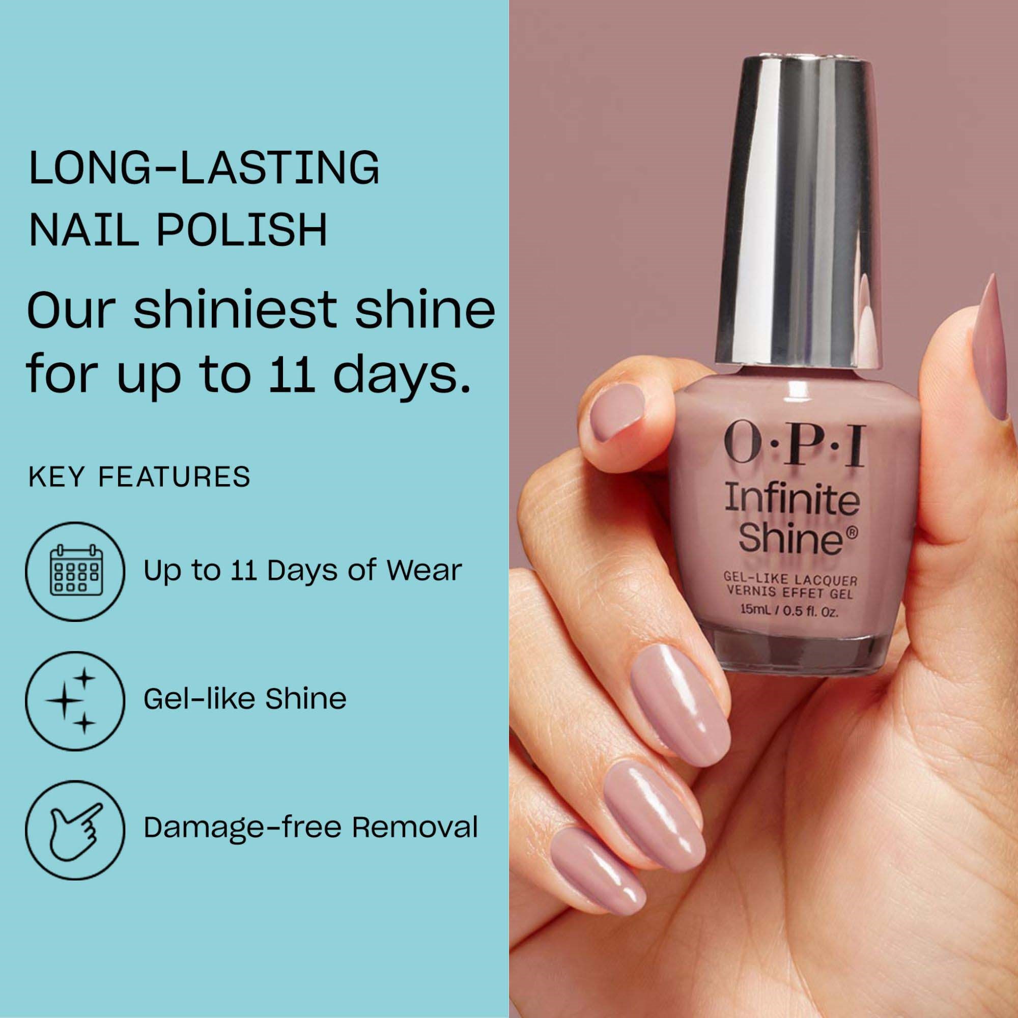 Podkręć świąteczny klimat z OPI! Klasyczne świąteczne słodycze zamknięte w lakierze do paznokci to gratka dla paznokci. Zakochaj się w czerwieni i bieli jak w cukierkach, poczuj ulubioną lukrecję lub ciesz się gładkim, korzennym piernikiem. Świąteczna uczta dla paznokci (ale nie dla ust)! Lakier do paznokci OPI Holiday Collection Infinite Shine Base Coat to lakier do paznokci, który wygląda jak żel, ale zmywa się jak zwykły lakier. OPI przedstawia nową przełomową formułę z utwardzoną technologią żelu, która zapewnia połysk, pełne krycie i długotrwały efekt do 11 dni. Żelowa formuła otula paznokcie, zapewniając gładkie krycie bez smug i bąbelków, a do tego łatwo zmywa się zmywaczem do paznokci. To wszystko, co kochasz w żelu i lakierze w jednym.Sposób użycia:Krok 1: Przygotuj naturalne paznokcie, aby zapewnić długotrwały efekt. Przytnij, opiłuj i wypoleruj.Krok 2: Nałóż 1 cienką warstwę bazy Infinite Shine Gel-like Base Coat. Pozwól paznokciom wyschnąć przez 1-2 min.Krok 3: Nałóż 2 cienkie warstwy wybranego lakieru Infinite Shine. Pozwól każdej warstwie wyschnąć przez 1-2 min.Krok 4: Nałóż 1 warstwę top coatu Infinite Shine Gel-like Top Coat na lakier i pozwól paznokciom wyschnąć.